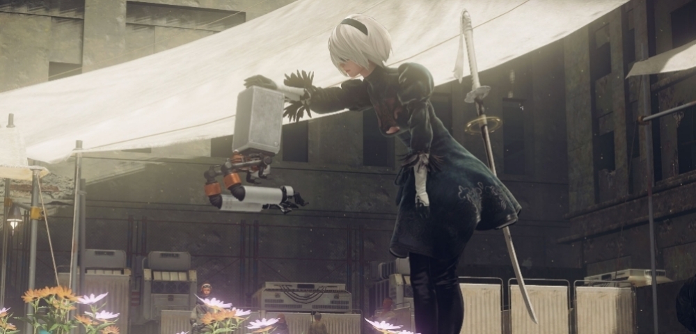 两人汇合不久后,前方地面的小队传来了求援信号。二人立刻马不停蹄的前往增援。有了2B的加入,战局危机立刻得到了缓解,而9S则是在周围提防着敌方增援。