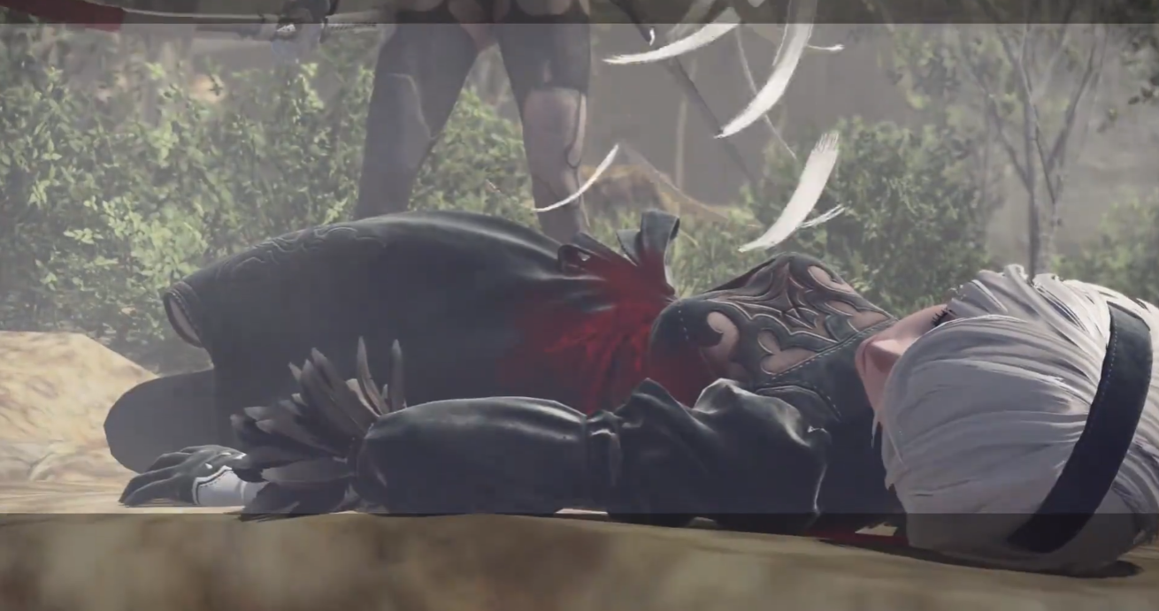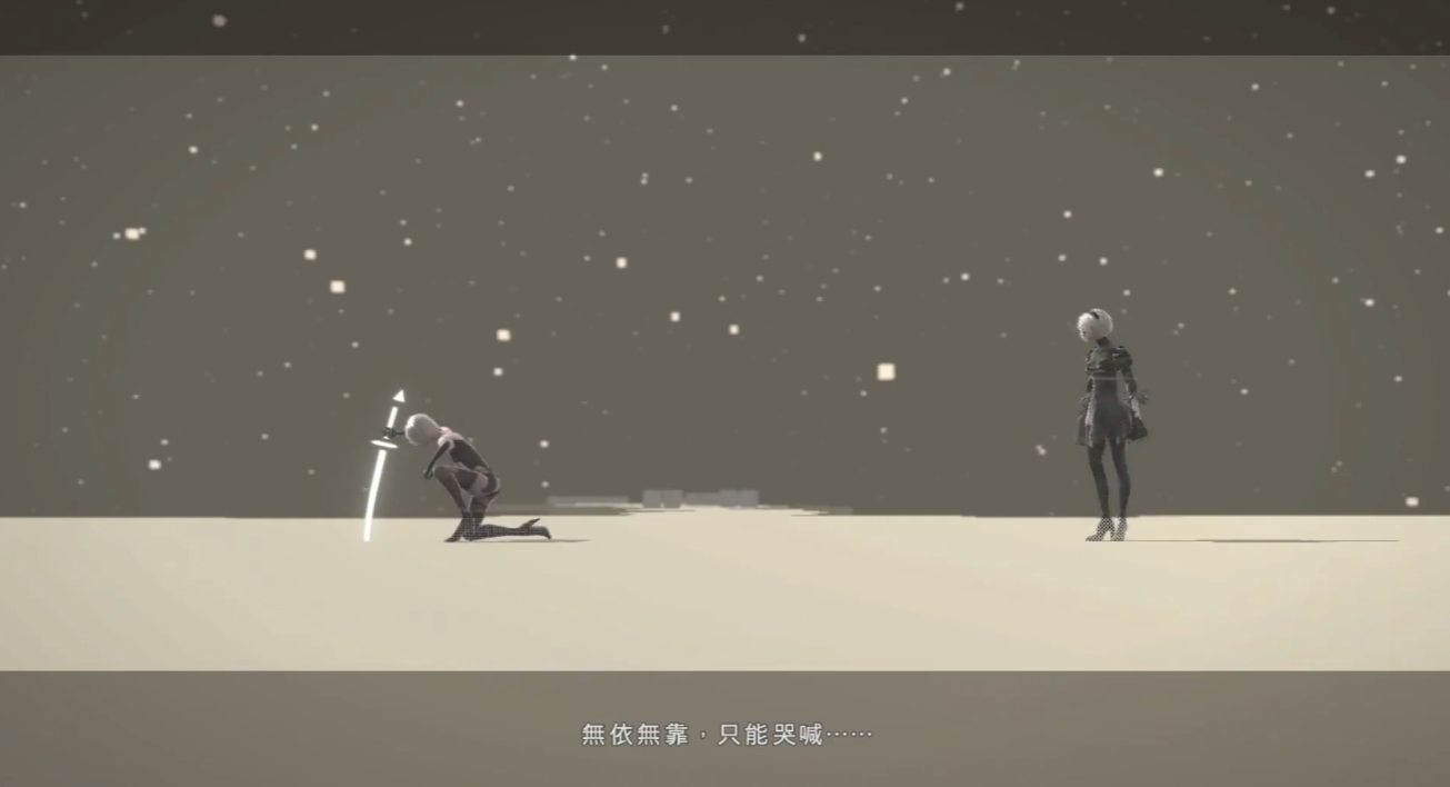 面无表情的A2拔出了插在泥土中的剑,刺穿了2B的身体。而这一幕恰好被探测到2B黑盒反应而赶来的9S看在眼里。