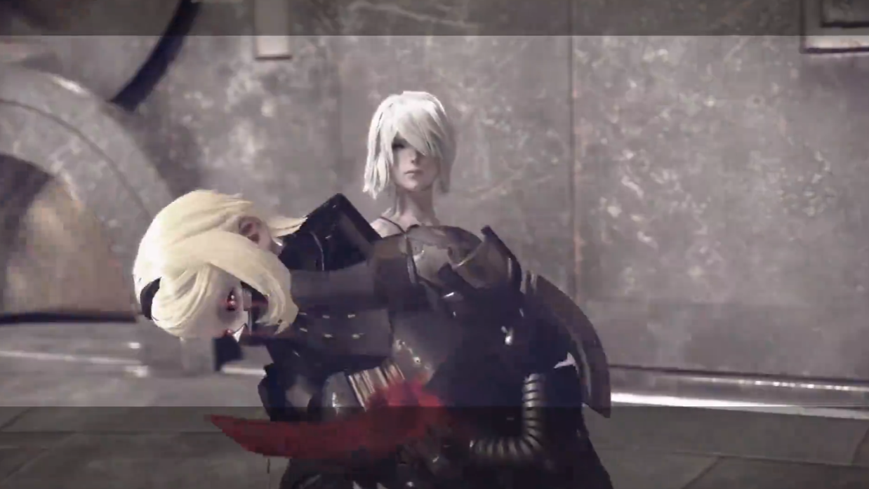 当A2赶到【神之箱】的时候,刚好看到21O从地上爬起来冲向一盘瘫软在地的9S的一幕。