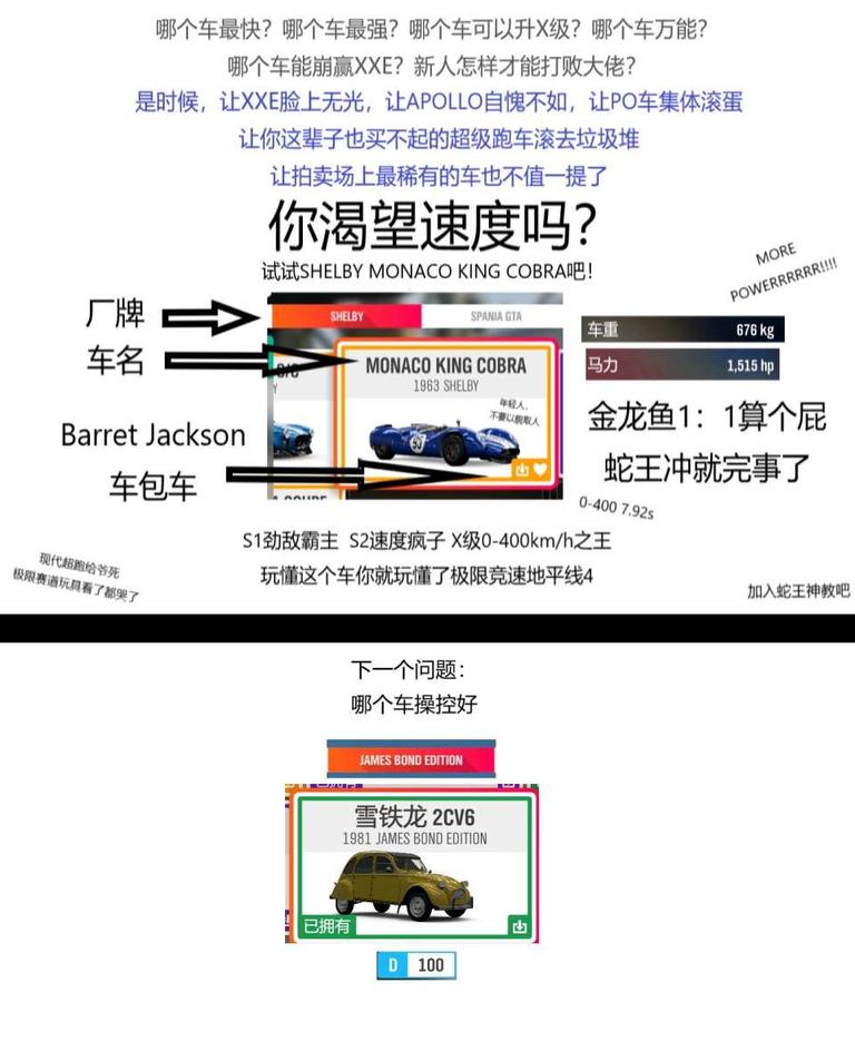 文中推荐使用的车辆及代码由贴吧@K℃oO₂整理,引用已获得其本人授权。
