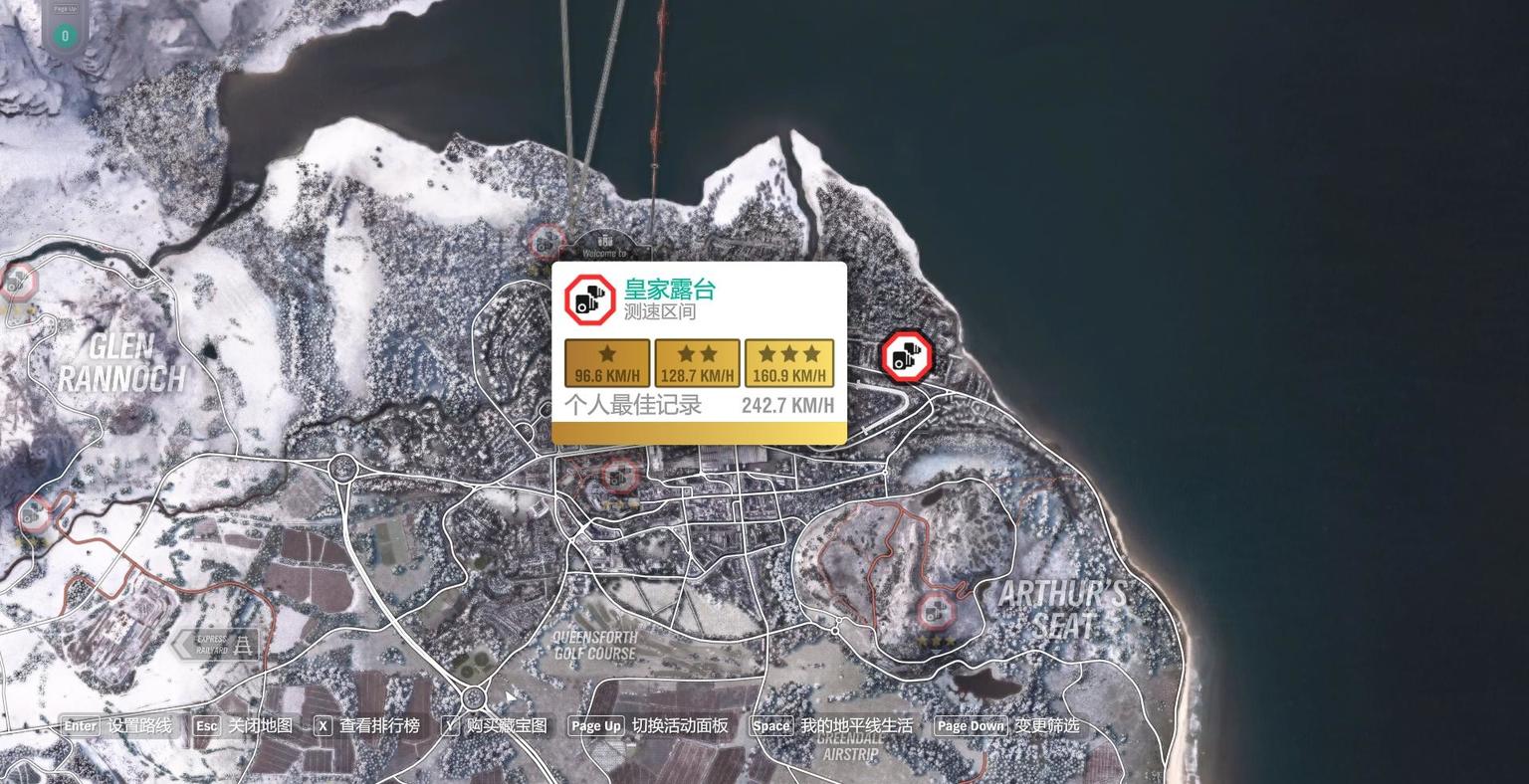 随意挑个测速区间跑出两星就行。如果你是非常新的萌新,就可以考虑上面这个“皇家露台”,“想三星?有手就行”。一直踩着油门即可,护栏会自动帮忙拐弯