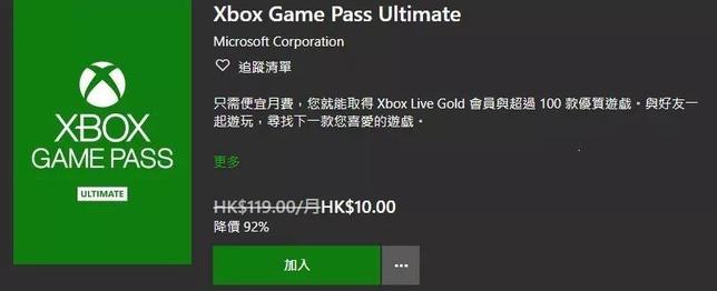 做完以上两步之后,最后一步就是把你的微软金会员升级为XGPU会员,就非常简单了,直接进入Xbox客户端(下面会介绍),然后选择加入XGPU服务,以10港币(8元)的价格升级,那么你充值的所有金会员时间长度都会1:1转化为XGPU服务。