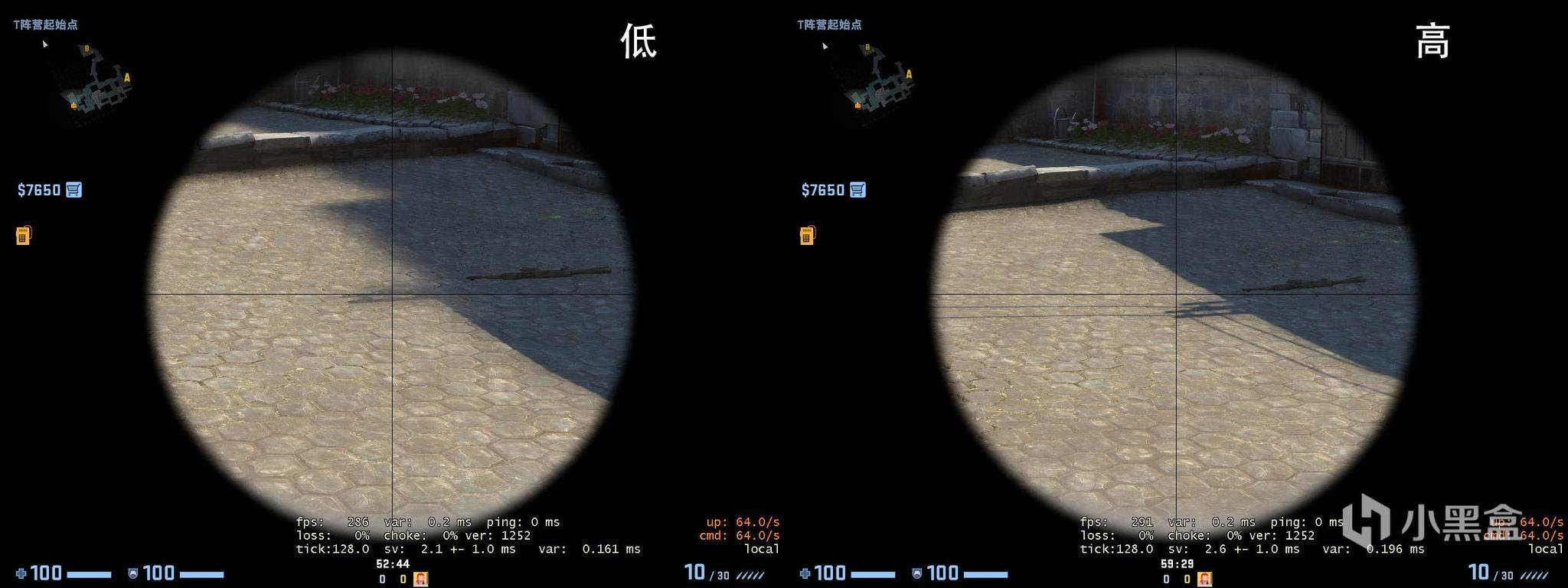 枪法可以很烂,皮肤必须好看,skr~。低特效下特别是有金属光泽或者多普勒这种吃光影的皮肤展示效果并不是很好。此外,这两项是影响你能否在燃烧弹黑烟后看见物体的主要原因,高特效能看得更清楚。而且人物模型的反光在高特效下也更容易被看到,这样你就不会被躲在阴暗角落的老六吓到了。