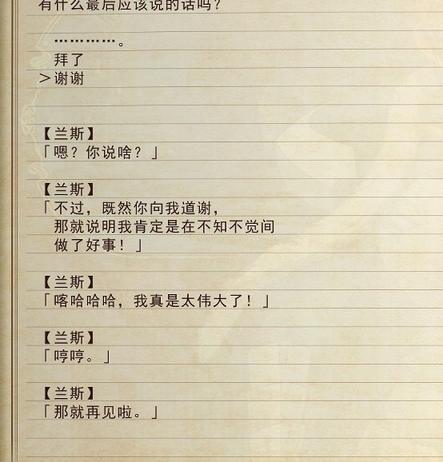 这个最后的选项其实是宣告兰斯的故事真正意义上的结束了,也是诸位玩家最后对兰斯的感受。