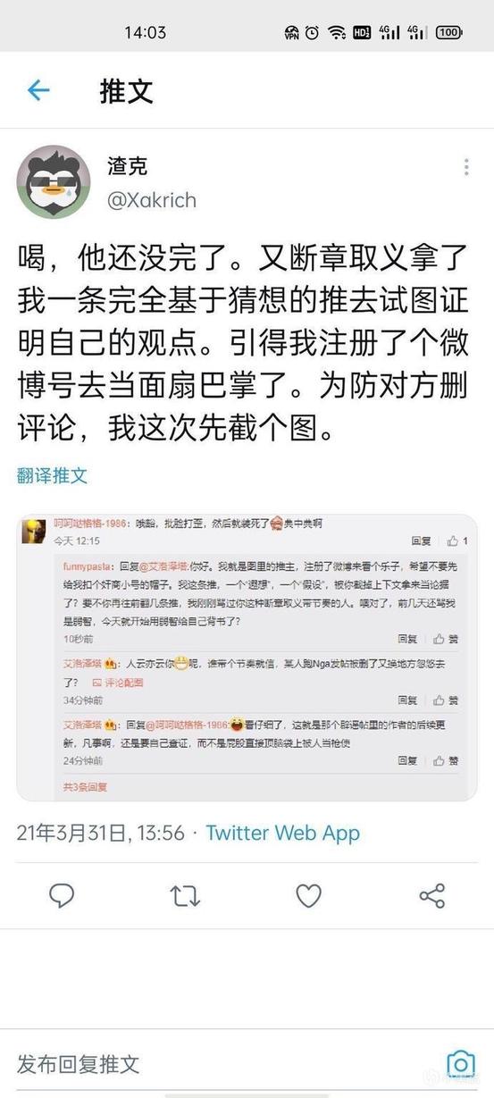 31日下午推上的证明人在微博评论区尝试与微博用户艾洛泽塔进行对话,但在其亲自进行评论不久后,该微博用户的评论区已经找不到推上证明人所进行的评论。此外,百度贴吧zod吧吧主使用微博用户艾洛泽塔微博内容所编辑的质疑帖也已经被删除。