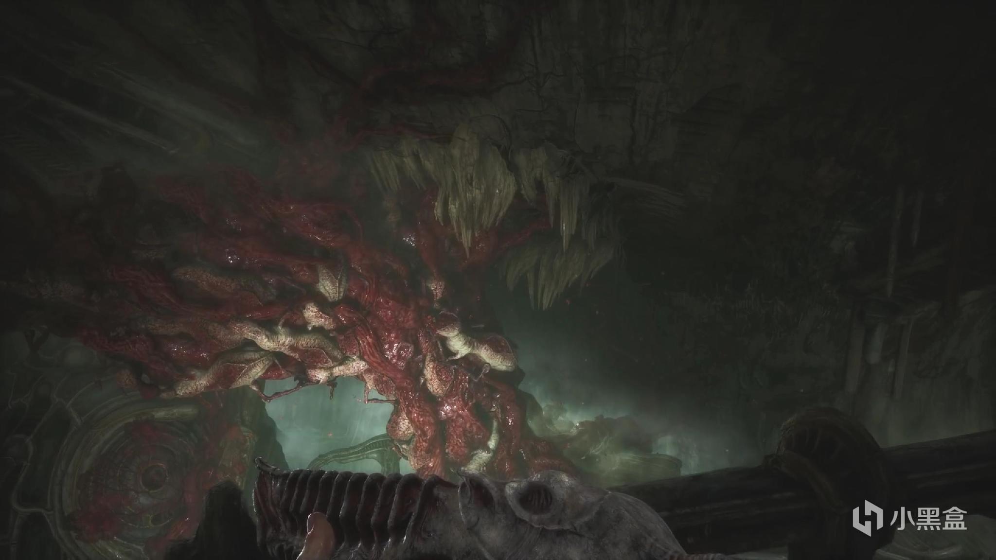 最终我们得出了一个骇人的植物发育过程,植物果实在成熟后会释放血藤蔓,之后血藤蔓便会主动寻找尸体并聚集在一起便于分解,随着血藤蔓的分解,尸体可作为养分的部分被植物吸取殆尽,而剩下的部分则变成光滑的红色肉块与血藤蔓融为一体。在清楚这点后,也能够推理出出现大量血藤蔓与尸体锁链的火山口隧道内也存在一株巨型植物,而且出现时间远比新演示中的那株更早。