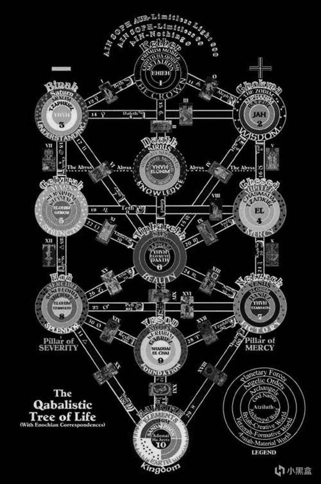 创造新世界与生命的特性使植物俨然以一副造物主的姿态存在于蔑视世界中,不禁令人想到卡巴拉生命之树,这里简单介绍一下卡巴拉生命之树,卡巴拉生命之树是一种犹太教所用的神秘符号,在旧约·创世纪中将其描述为通往神的路径或神从无创造世的过程。卡巴拉生命之树共由10个原质、4个世界、3个支柱、22条路径构成,描绘了世界从精神到物质、从无限完美到有限缺陷以及人与神分离、不断堕落的过程。总之,生命之树包含了万物的起源与世界本质的秘密。