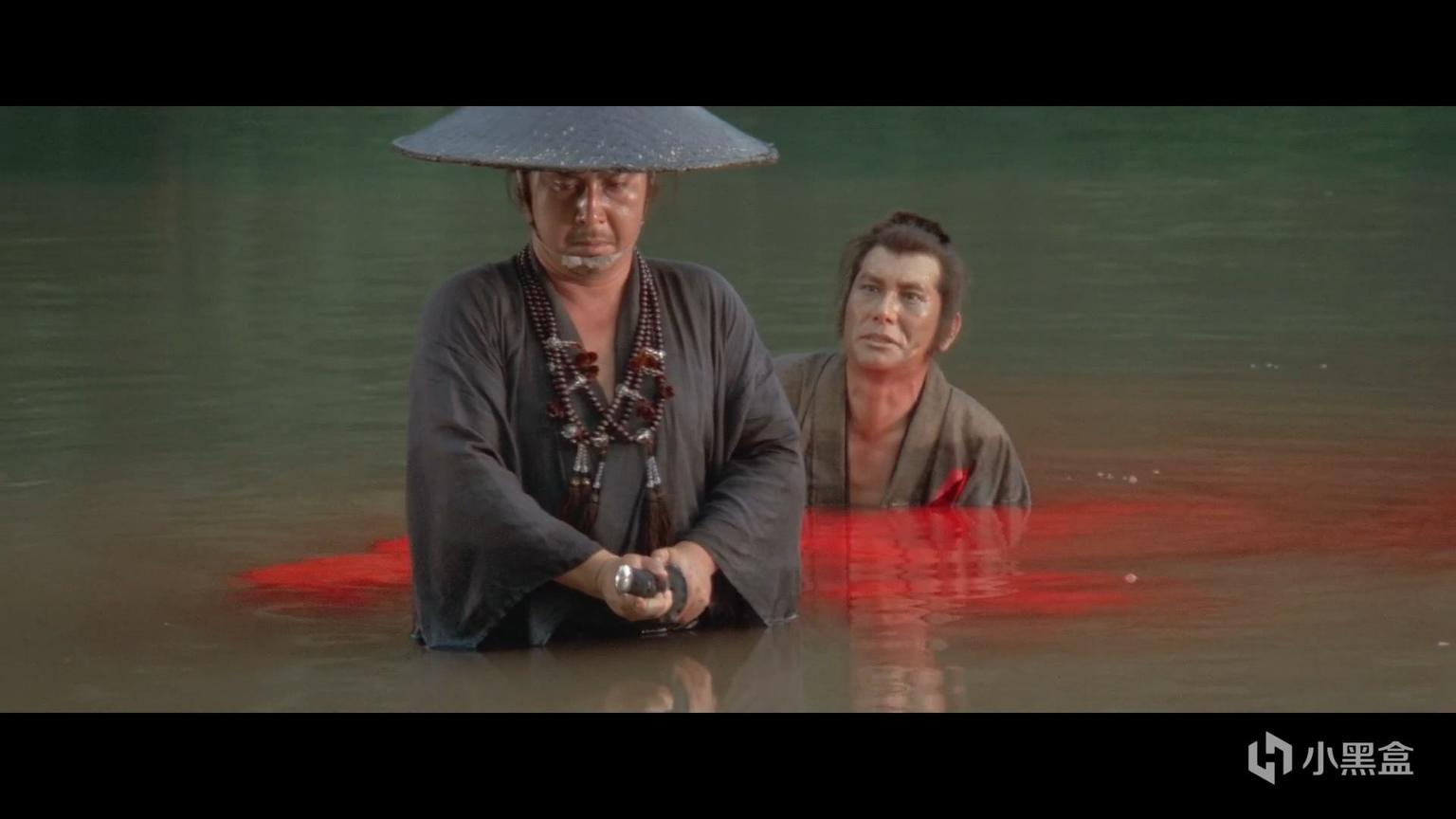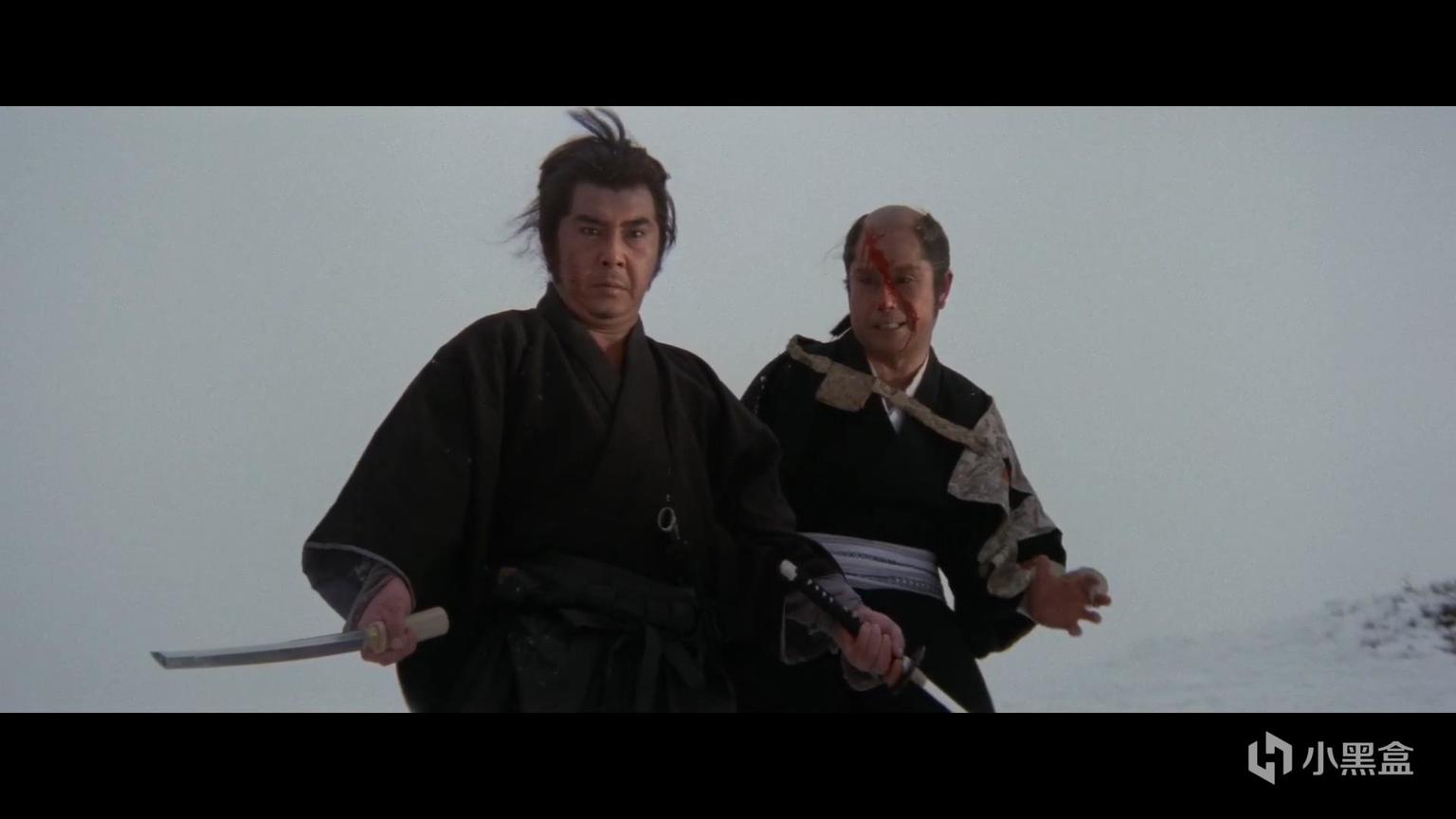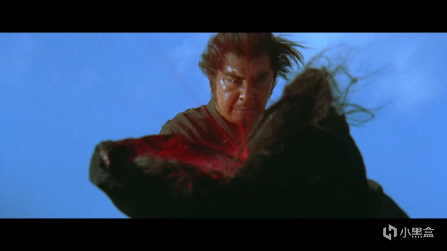 另一个值得玩味的镜头在《向乳母车吹去的死亡之风》结尾,拜一刀为比试落败的武者介错时。手起刀落,镜头出人意料地切换到了被砍者的第一人称视角。