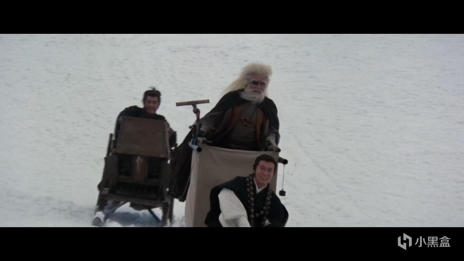 除了不能上天,这辆婴儿车几乎没什么办不到的,不论当船还是雪橇都是小意思。在最后一部《地狱之行!大五郎!》结尾,你还能看到拜一刀和宿敌柳生烈堂在雪地飙车的奇景,喜感十足。