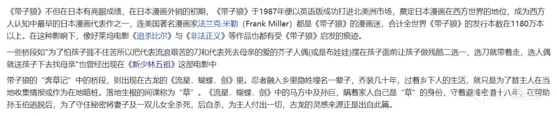 作为一个武士文化IP,《带子雄狼》在东西方乃至全世界都留下了深远的影响,尤为难得。