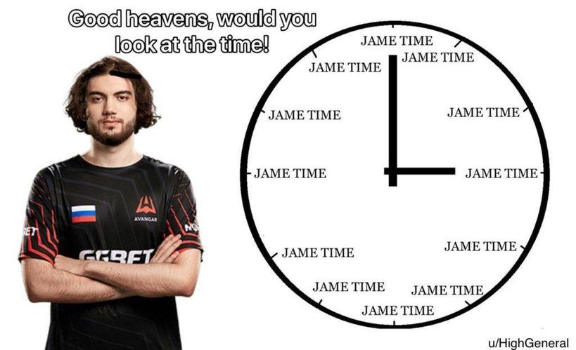 “也许我以后会后悔没给Jame Time申请个专利。”Jame在接受采访时开玩笑道。这个梗在2019年AVANGAR打进柏林Major时是最出名的,而Jame也带队成功打进了Major决赛,最终败于如日中天的Astralis。