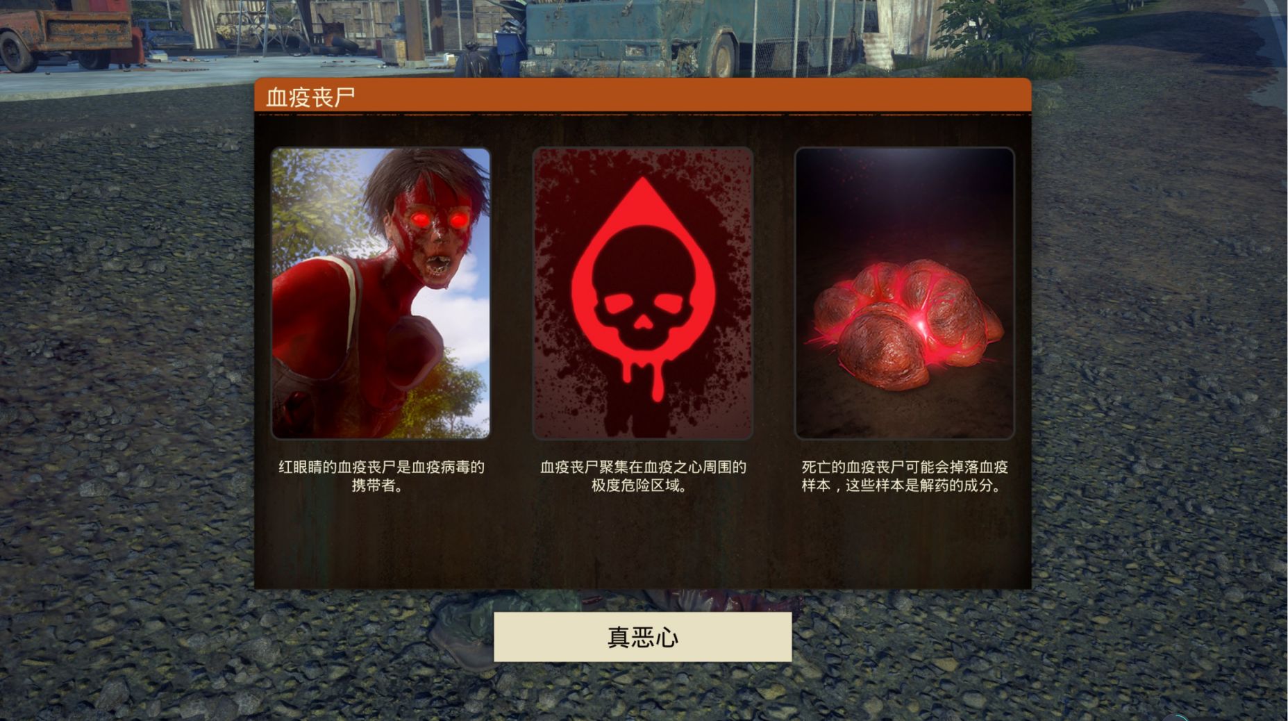 如果不及时送至医疗中心或服用血疫解药的话,下一个行尸走肉就是你!