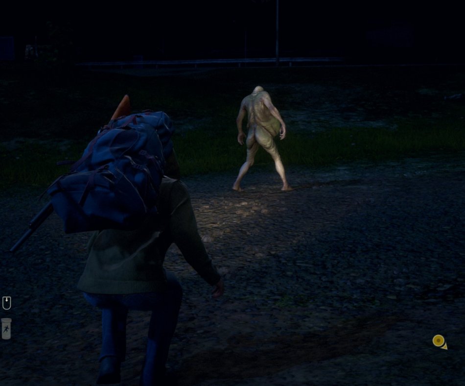 3. 囊肿尸:我愿意称它为全图最恶心的邪恶东西,他很脆,一枪就死,无论是什么枪,哪怕弩箭都行。但致命的就是他死后爆炸奔涌出的,夹杂着绿色臭气,并伴随蚊蝇乱飞的有毒气体,可谓是沾着死,碰到亡啊。你在公路上飞速驾车的时候,一个右转弯,可能注意力全在方向掌控上,完全没注意拐角有一只腿细大肚子的丑陋怪物,一脚油门过去,只听得“嘭”的一声响,你的车上便全是绿色毒气,如果不及时下车,就会持续掉血;所以你只能老老实实等待烟雾散去,可即使这样,人物也会受伤,生命上限和体力上限都会被大打折扣。有这么一句话:出门撞泡芙,一天不出屋!