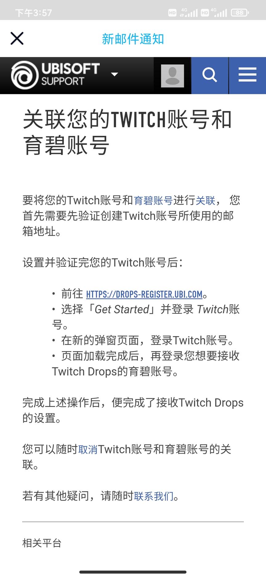 之前楼主的twitch因为在某宝购买了twitch的主播挂件,而育碧的绑定是需要双向绑定,所以第一个星期到第二个星期的一共六个包全部消失,经过给育碧发工单,弄了快一个星期以后终于把这件事解决了(育碧一天只给我回复一个邮件,hxd们我服了)