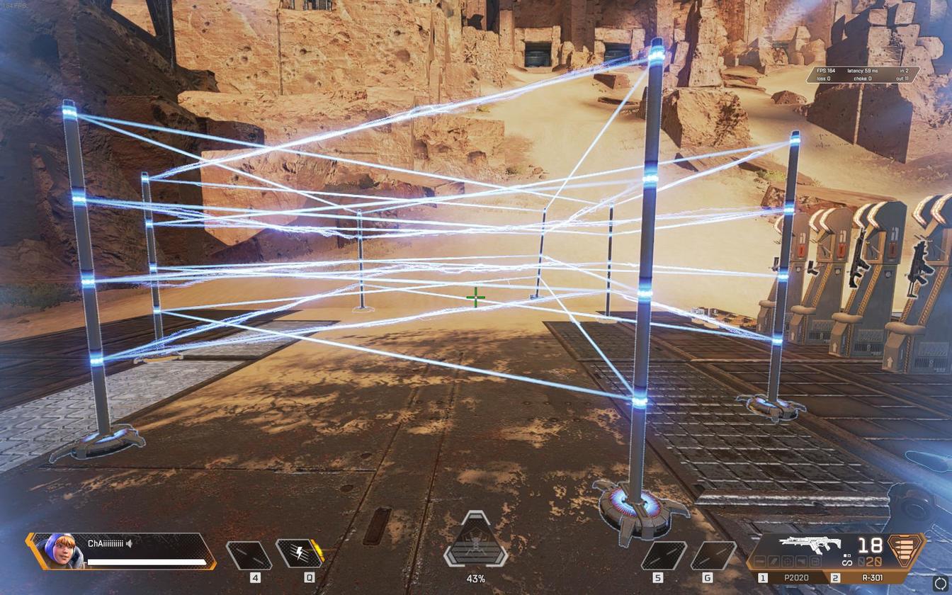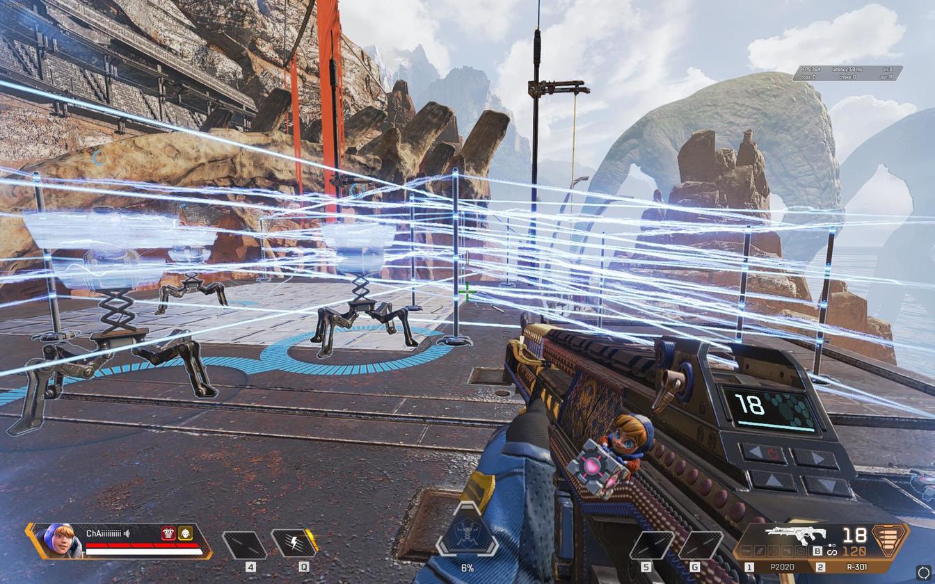 再看电妹和恶灵等英雄专属的”低调“,其实表面看电妹的模型背后背着一个巨大的电塔,但其实电塔并不算在受击判定范围内,电妹真正的hitbox可以说是比较小,所以会有低调的debuff😕,反观轮椅人背上突出来的绳索却被算在了hitbox里,看着小却非常容易被击中!! 电妹的Q技能为这个英雄的核心,🤔先看她的大招,电妹放置一个电塔(150血量),能为范围内的所有人提供每秒2点的回甲功能,同时会摧毁进入电塔范围内的所有投掷物(包括队友的道具哦QAQ),地平线的Q、大招等,有飞行路线的道具都会被拦截!😝同时电妹本人在电塔的范围内Q技能的CD会像狗子大招一样大幅度减少。所以在大招期间应该善用你的战术技能。 最后来看电妹的战术Q技能!电妹放置一个电网底座(最多储存4个,地图最多存在12个),两个电网底座在限定范围内便会连成一张电网(每个底座拥有25的血量),穿过电网的敌人会遭到15点伤害和2秒类似与电弧星的震撼效果⚡⚡⚡,此时敌人的视角灵敏度被大幅度降低,基本没有还手之力,抓住这个timing能快速秒杀敌人。 那么这种”两点一线“的技能使用方式在本游戏里实在是过于鸡肋,而且电网超级炫酷闪亮⚡效果也没有毒气罐的隐蔽性,我们在实战中如何用好电妹呢!!?🤔