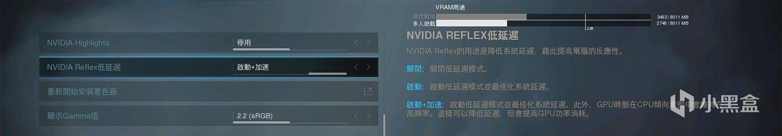NV Reflex有条件开到启动+加速,能进一步缩减画面延迟,让游戏更贴手。相当于NV控制面板的低延时模式的进一步强化。