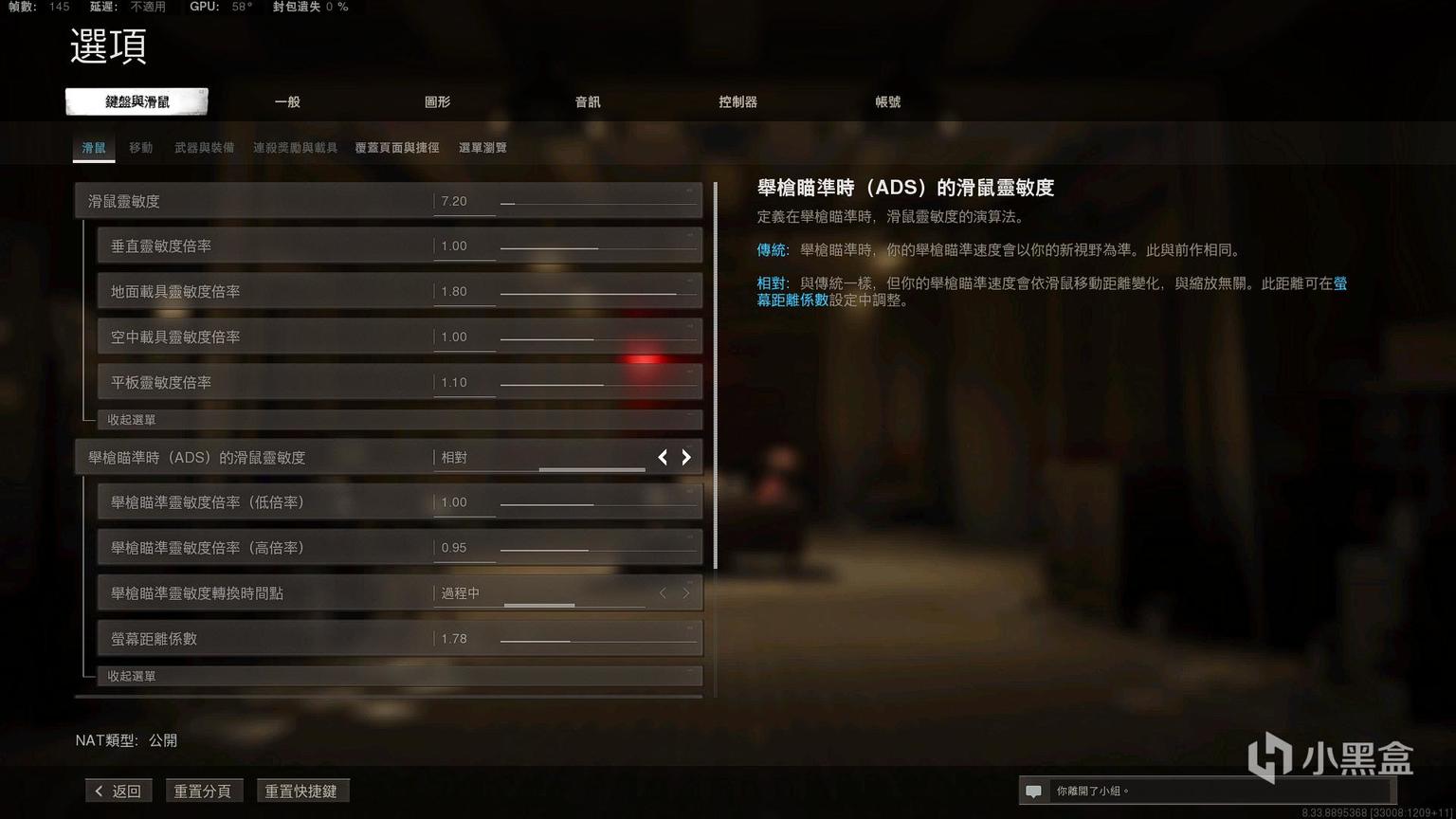 游戏开载具视角转动明显能感觉缓慢,所以我这边地面载具灵敏度倍率提高到1.8;