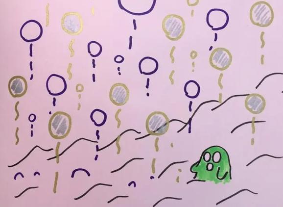 TADA非常喜欢涂鸦,所谓涂鸦,是一种胡乱的色彩堆砌,乱涂乱画,但如果它们能在艺术家的涂抹中,做到看似杂乱无章、实则相辅相成,就能成为一种别样的艺术。很显然,TADA的画工是达不到那种水平的,他的涂鸦就纯粹是无聊时的涂鸦罢了,是一种让想象力在纸上肆意飞舞的活动。