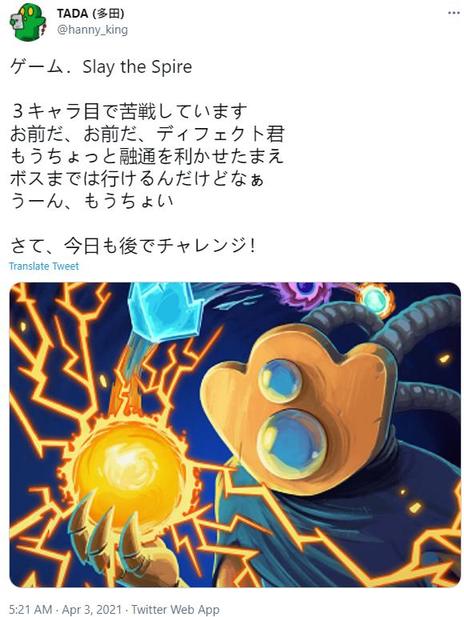 TADA玩过的游戏种类很多,不仅仅是Gal领域,别的日厂游戏他也玩的很多,比方说光荣的《信长的野望》、Falcom、Epoch社,对这些游戏的评价也是不凡,CAPCOM是当初他可能去任职的公司,应该是也有所接触。最近TADA似乎在玩杀戮尖塔,看上去也是相当沉迷。Gal领域内的游戏,他最开始时玩了《天使们的午后》,后面很推崇蛭田昌人的作品,也玩过《家族計画》、《CLANNAD》之类的作品,TADA给出的评价都不低。