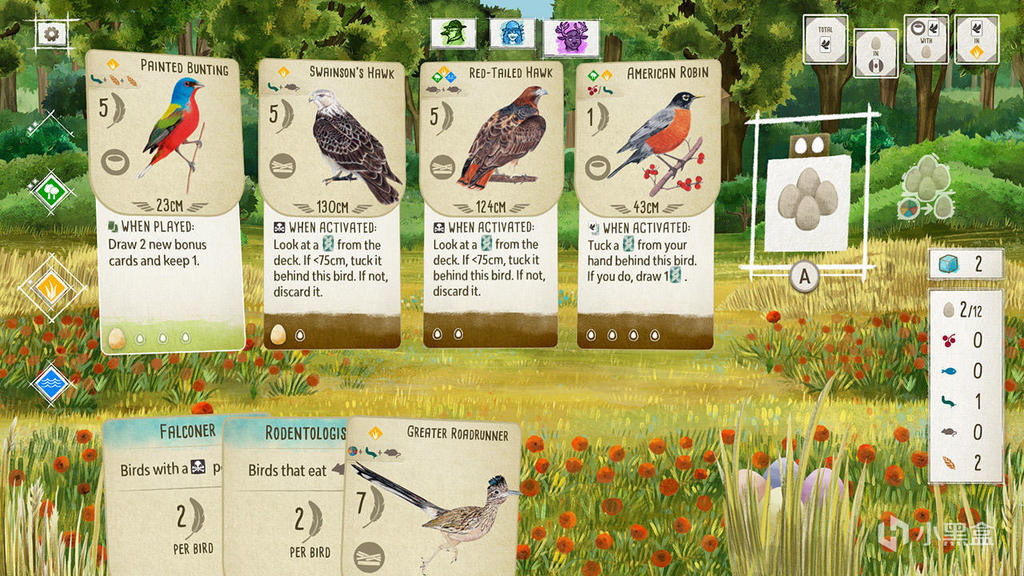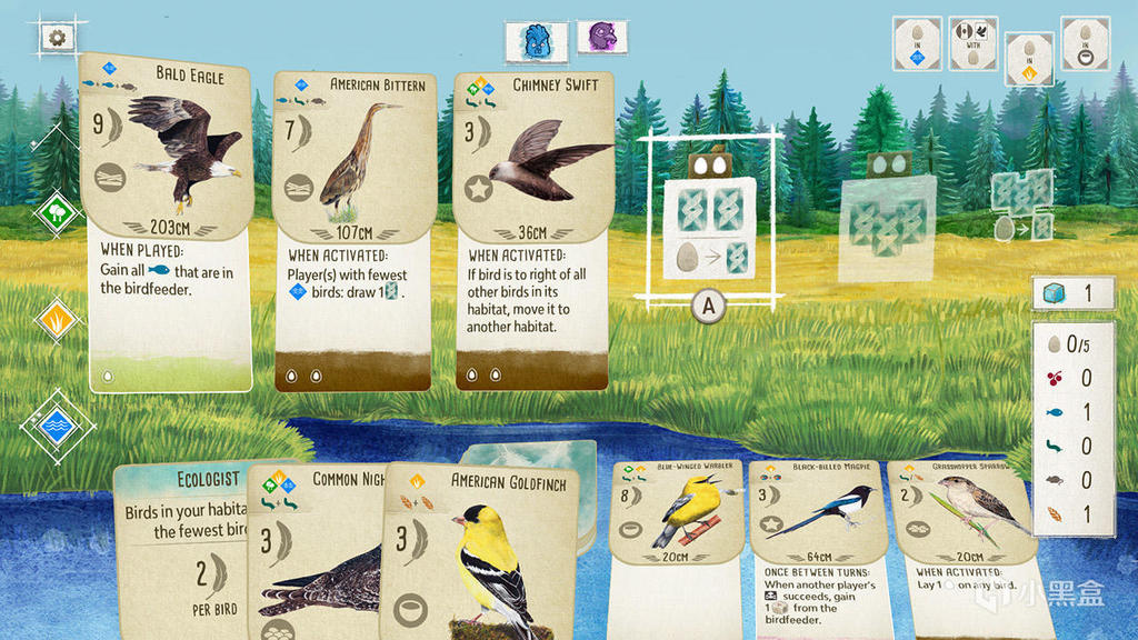 画风清新的小品级别卡牌游戏,鸟类爱好者的福音。但如果你不是鸟类爱好者也没关系,完全可以把它当作一部鸟类介绍的百科全书游玩。轻松有趣,令人愉悦。此游戏还有联机功能,你和你的朋友,将扮演各种鸟类发烧友,通过将最美丽的鸟类吸引到自己的生态保护区栖息,从而获取最后的结算积分。游戏中提供超过170多种独特的鸟类,你可以通过吸引,抽取卡牌,鸟类产蛋以及收集食物等手段,提升自己生态保护区的多样性。从而在竞争中取得领先并最终获取胜利。