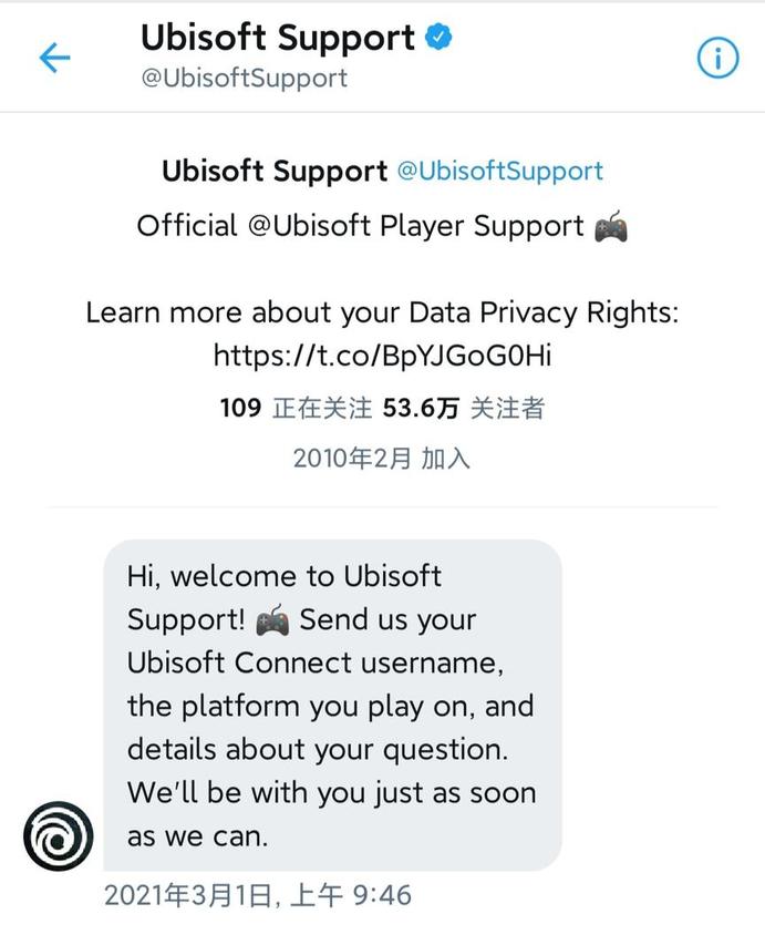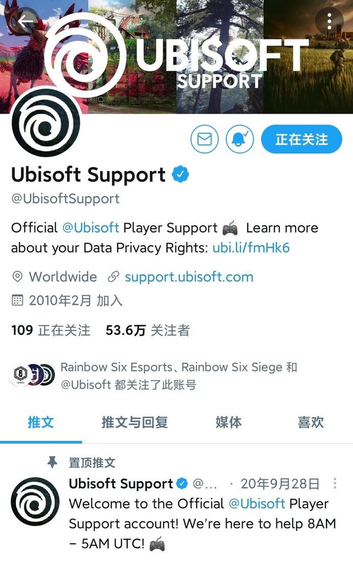 2、Ubisoft Support官方推 特