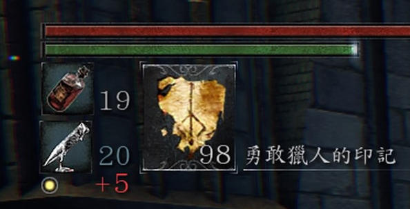 勇敢猎人的印记,可以回到最后的传送点,敌人全部刷新而且子弹与血均不会刷新,利用这一点可以做到快速刷取血之回响,中期会大量使用,游戏难度大大降低