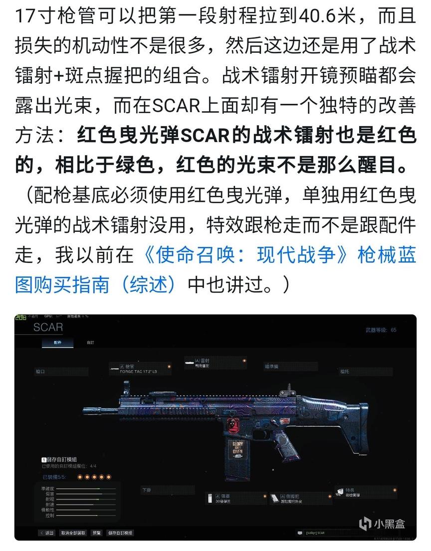 Scar推荐使用红色战术镭射蓝图,更不易被发现