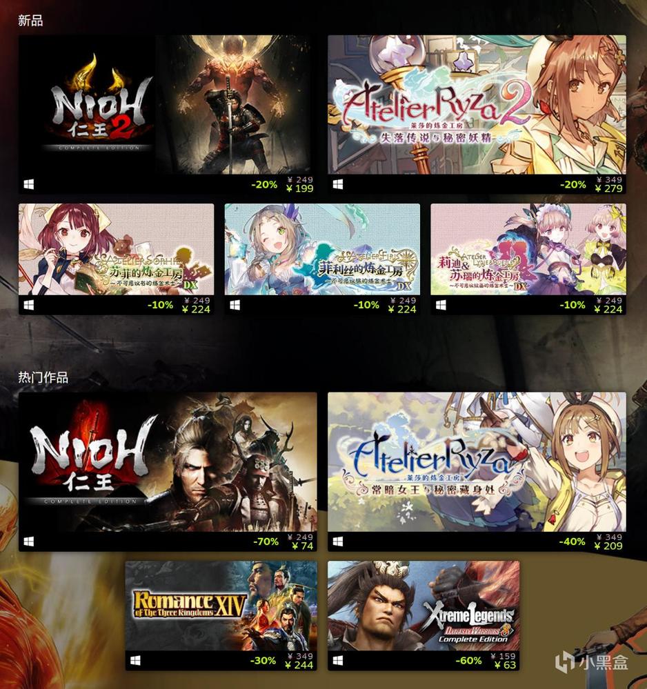 在本次发行商特卖中除了光荣特库摩广为玩家所熟悉的《无双》系列外,《炼金工房》系列、《仁王》系列以及《三国志》系列等其他知名IP都包括在此次特卖中。诸如刚推出不久的《仁王2 完全版》迎来了首次促销,而依然不断更新的《三国志14》和《莱莎的炼金工房2》也有着超值的折扣。