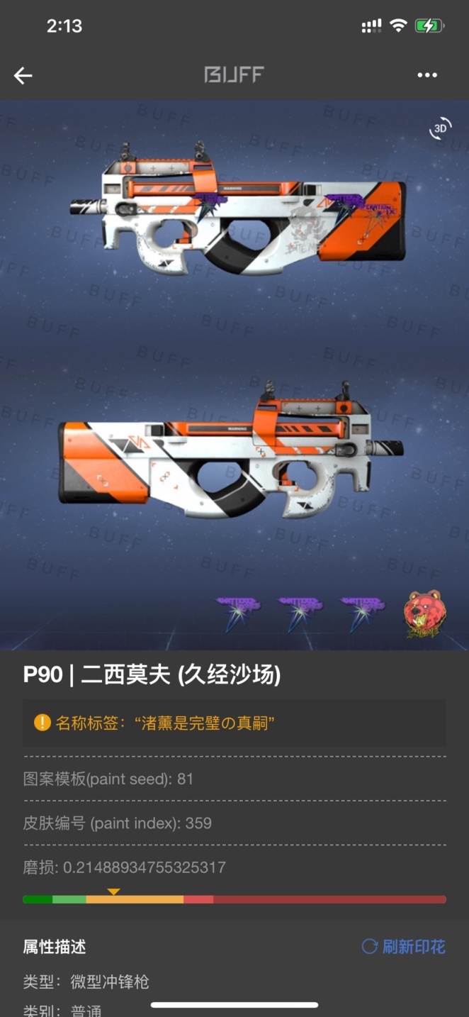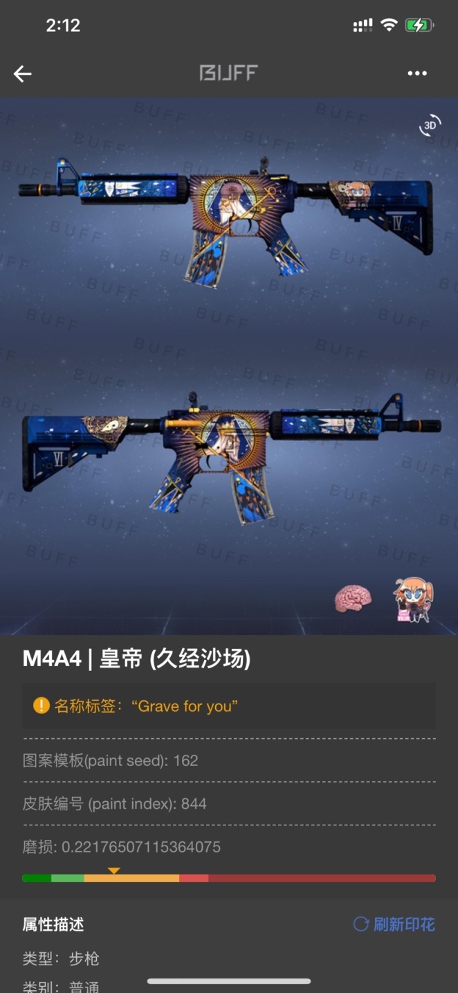 - 目前我的二次元皮肤改名,或者说我的死宅之路就介绍到这里结束了,心血来潮,然后码了三小时字快五点了,明天还要上班太棒了……大家还有什么有趣的改名和好看的皮肤希望也分享一波,我这边也会借鉴一下为了以后的爱枪名字做个准备,不然每次改名是真的头疼嗷,谢谢大家能看到这里了。#csgo饰品#