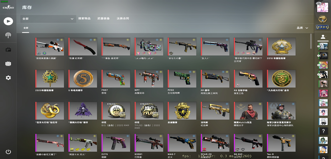 - 接下来是主战枪的awp皮肤,我在买了之后一直没有换过 awp 极限战痕 暗金 二西莫夫,我极少数会去买暗金的皮肤,个人有这么个癖好吧,打狙就喜欢带计数器的,然后换皮肤数据再转移过去……改名为 "丽是無意識の真嗣" 源自动漫:EVA 丽是动漫人物凌波丽,三无少女,灵魂来自真嗣母亲的复制人。目前打算下个月换暗金的鬼退治来着,到时候换一波饰品了再来更新
