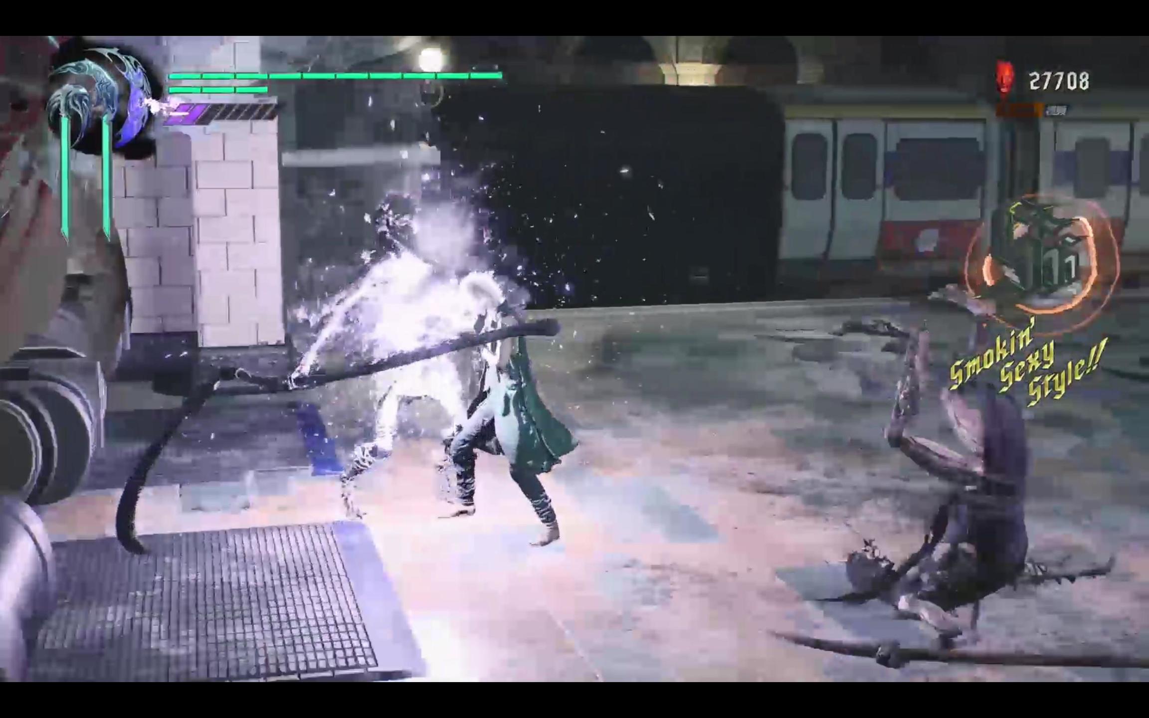2. Player(动作游戏玩家):在这个阶段中,玩家开始适应了与敌人的战斗,开始理解游戏的规则,开始尝试简单的连段,开始探索游戏的机制。这个阶段的开始标志是玩家开始理解连招的高挑战和高收益,从而脱离了学习者的阶段。动作游戏的特点往往是通过最简单的排列组合来构建自己的深度,当一名学习者开始意识到一直按按键比不上连按两下停一下再按的收益时,就算是真正领略了动作游戏的奥妙。这一阶段与玩家的装备和技能无关,而与玩家能否在正确的时间做出正确的事情有关。不把每一次动作视作单独的个体,而是将动作衔接起来组成一个整体,这才是ACT游戏最大的玩法。而《鬼泣5》在1周目结束时就完成了这个阶段的整体构建,接下来在多周目下就进入了第三阶段。