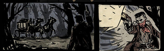 与往常一样,我隐藏在黑暗之中,捕食者似的感觉令我感到愉悦万分。我喜欢笼罩着我的黑暗,我的身影将如同鬼魅一般出现在他们眼里——一辆马车,两人护送,似乎在提醒着我里面满藏财宝。