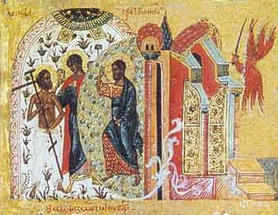 17世纪的俄罗斯圣像画中,耶稣带狄思玛斯去乐园,右边是乐园之门,由基路伯守卫,左一为狄思玛斯。