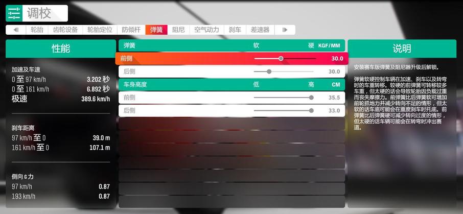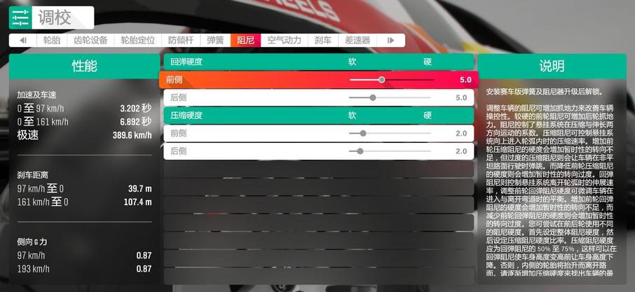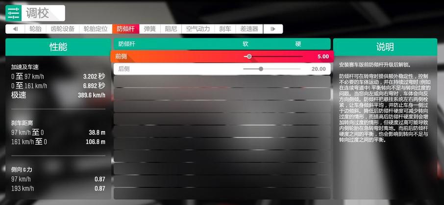 确定改装件已经接近最优后,就可以进行调校数值的设置了。
