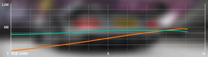 Racing V12发动机的转速/功率曲线接近线性曲线,最高功率附近的区间较窄