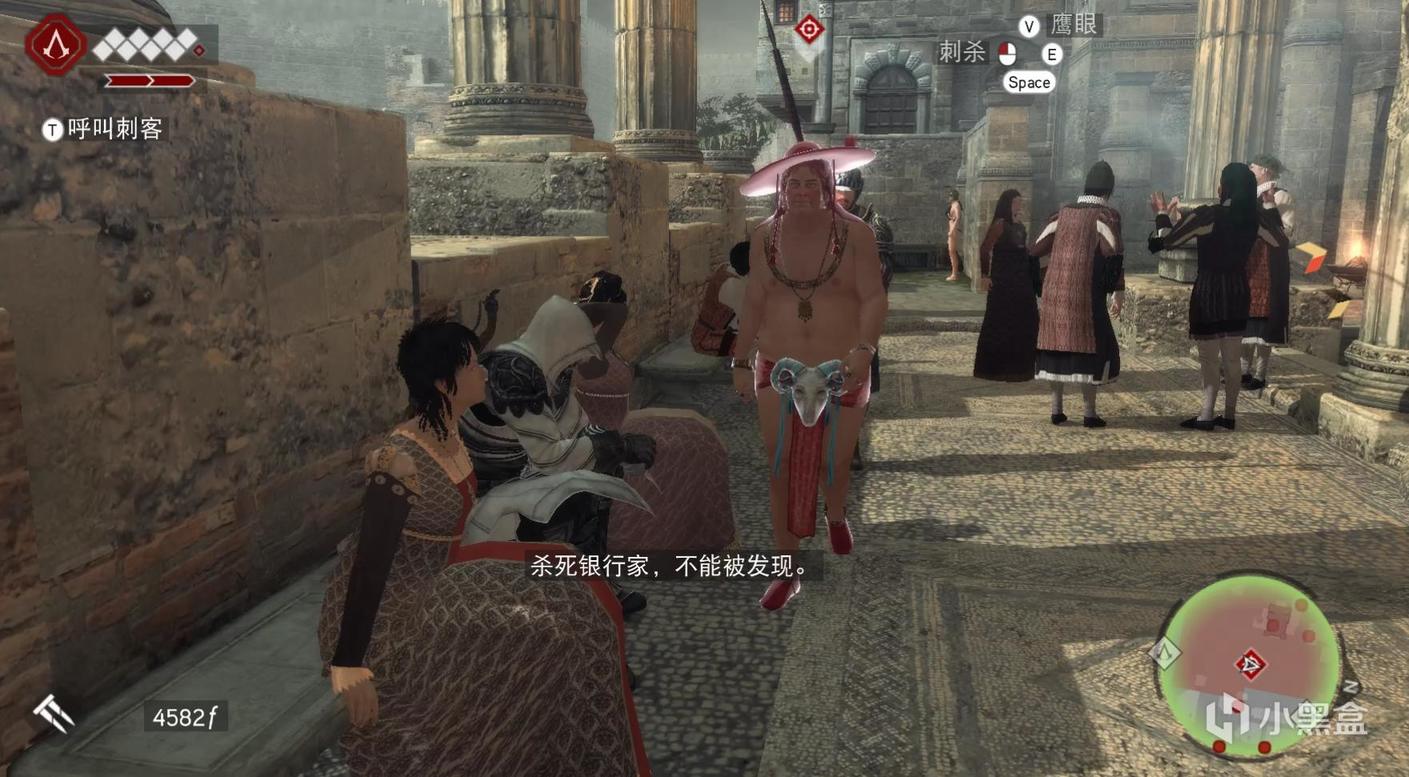 为了进一步削弱切萨雷的财源,E叔乔转打扮以混入宴会刺杀银行家,在这个任务中,我想大家应该和我一样,对两个场景印象深刻,一个是艾吉奥为了刺杀卫队队长,从万神殿的镂空穹顶一跃而下,高空刺杀。另一个则是银行家奢靡的宴会Party,以及他自己富有“情调”的装束。解决了银行家之后,E叔又在竞技场解救了演员皮耶罗,这家伙因为给切萨雷戴绿帽,而被后者派人暗杀,得亏碰见我们E叔,否则此人一定die得很惨。