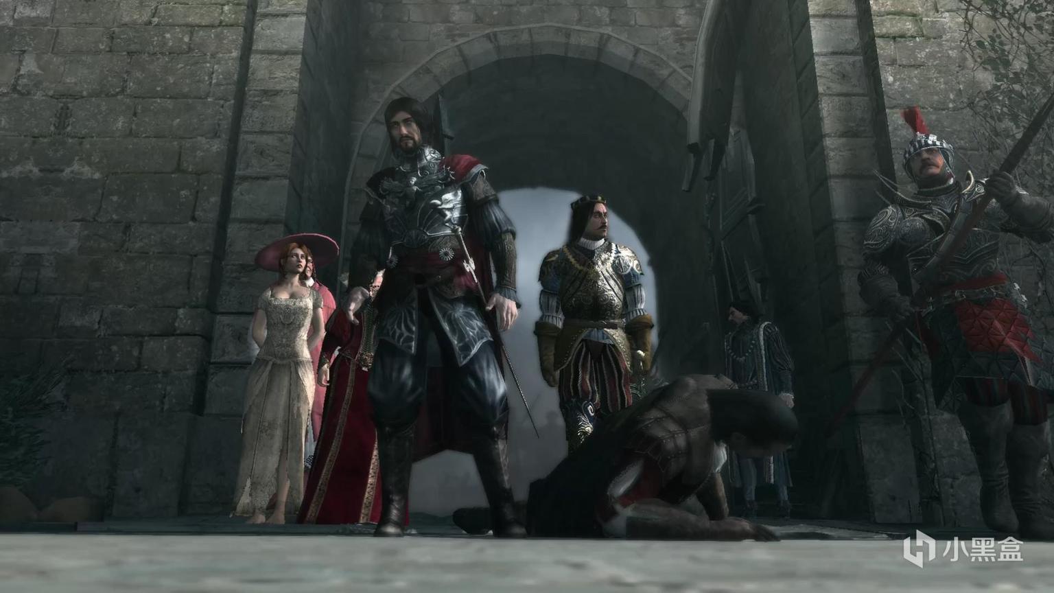 与此同时,本作的反派人物——切萨雷(或译作凯撒)·波吉亚登场了,他当着艾吉奥的面毫不留情地枪杀了后者的亲人兼导师:马里奥叔叔,这样的打击仿佛直接往艾吉奥心头抹上一刀。从这一刻起,我们知道,新的复仇之路又开始了。