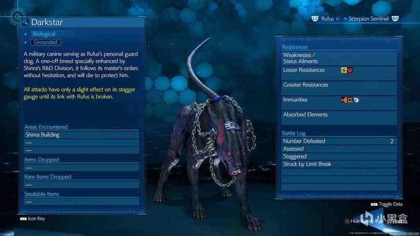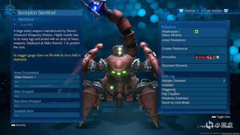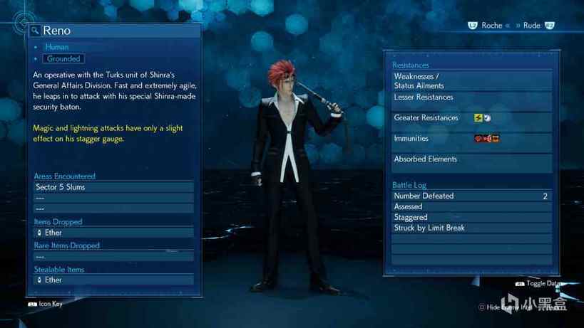 第1章,作为本作第一个boss,他最初出场好像是扎克斯的里面,挑战难度还是比较简单,弱雷,他会给自己上个防护罩,需要破坏磁场放置器才能关闭,用火魔法和巴雷特攻击,靠近会被打,当他血量下降到75%的时候,他会跳到墙上,并向你发射远程电击,使用巴雷特的【猛烈枪击】和克劳德【烈焰】可以造成大量伤害,它很快就会跳回原处并进入下一阶段,只要保持距离就可以躲开攻击,当他血量降到一半,他会用尾巴发射激光,伤害爆炸,躲在杂物后面,防止激光射到,给两个角色装上雷霆,怕死的可以带个复活和复活项链及其猥琐
