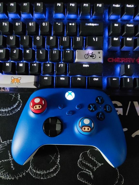 (三)保护套的选择。这个完完全全就是看老哥自身的选择了,在这里我只能提提我个人意见了。最好能买一对摇杆的套,就是因为我的手柄搓久了发现摇杆出的容易脏而且不容易清洁(可能是因为我的摇杆不是黑色而是蓝色),所以我就买了对儿套,还不错。其次就是手柄的保护套,如果想买来好看的收藏的那就买套吧,不然就别买了,毕竟不能亏待手柄上的防滑点点的设计,那些防滑点摸起来还是挺舒服的,毕竟手柄这玩意是个消费品而不是收藏品(特殊稀有配色除外)。