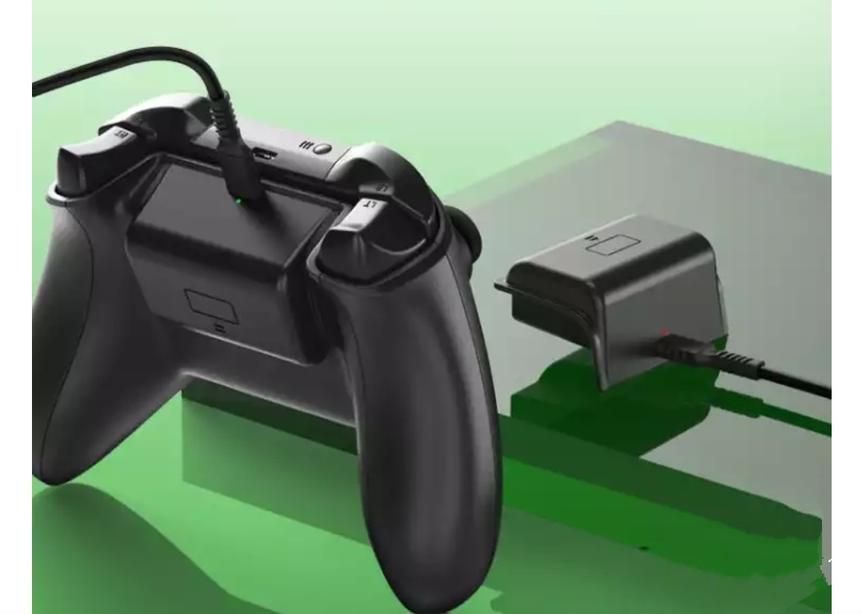 (二)接下来要讲的就是充电套组。就直接开门见山了,我并不推荐买Xbox的充电套组,因为在我看开也只不过是可以反复充电的充电电池加上一根线。顺便我也要说一下,不要买一些杂牌的充电套组,这些玩意虽说长得跟Xbox的充电套组,而且也能用,但是它的品质难以得到保证,可能下一秒就充不进电;而且有些还有虚假容量,也就是实际上电池容量并没有吹嘘的大,并且隔三差五的就又得充电。而且我又有个朋友,他买了个图中的那种Xbox专用电池的,大大的一个,很影响手感。
