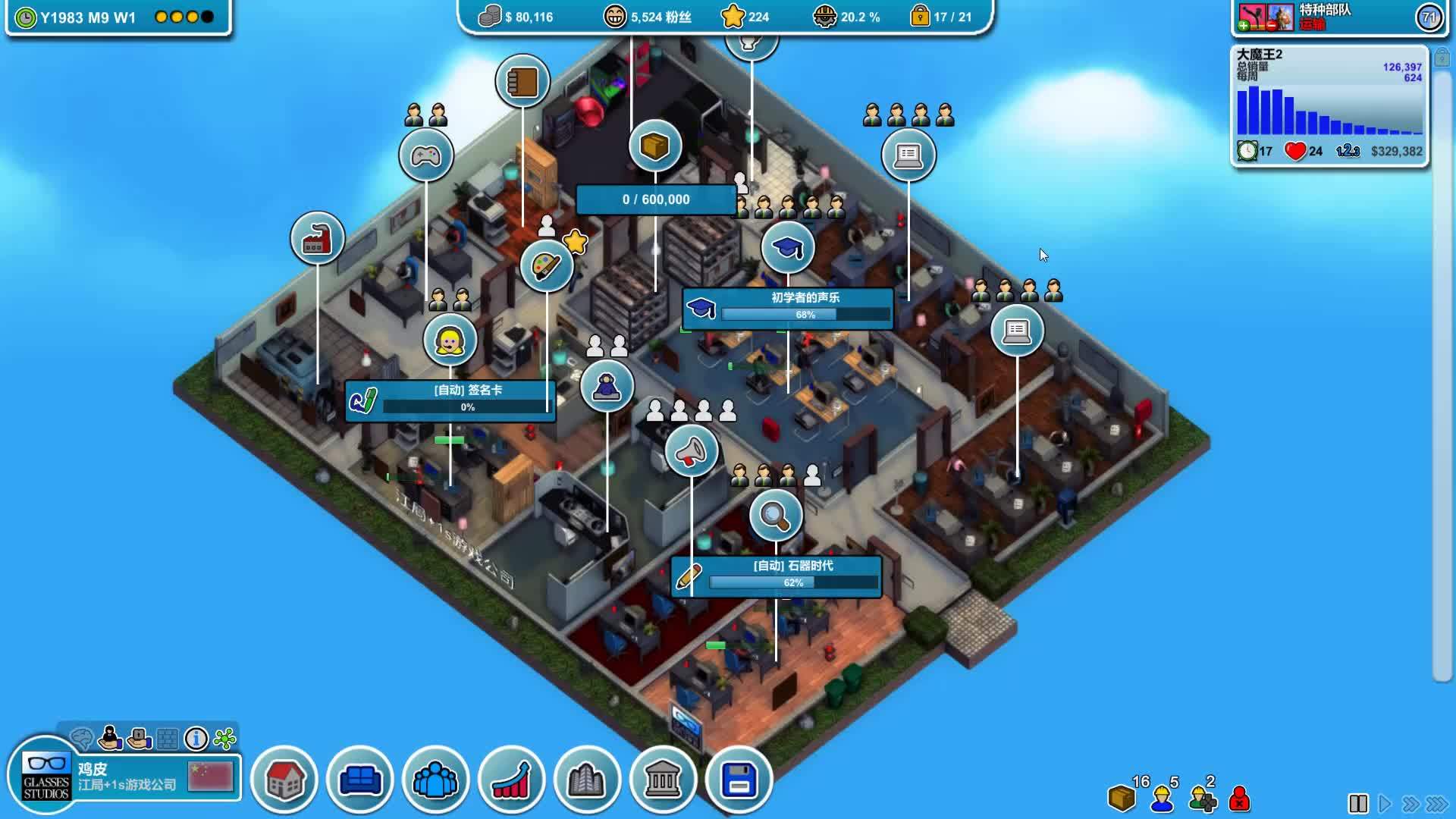 《疯狂游戏大亨》中就有着强烈的《游戏发展国》的影子,随着时间的推移,各种全新的功能也会逐步对玩家开放