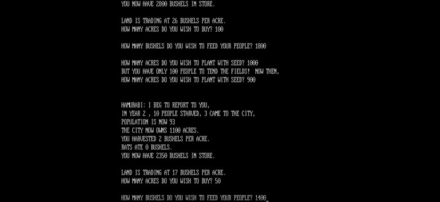 虽然由于时代的机能所限与未完善的技术体系,《Hamurabi》的一切玩法都聚焦于文字与玩家产生的交互,但游戏本身所提供的系统却基本涵盖了传统意义上“模拟经营”类游戏所需要具备的玩法要素。管理土地和粮食并进行交易,以此不断扩大辖土内的人口,整个框架虽然简单,却把“模拟经营”流程闭环的特性诠释得清晰明了,一定程度上赋予了比其他类型游戏更强的持续可玩性。