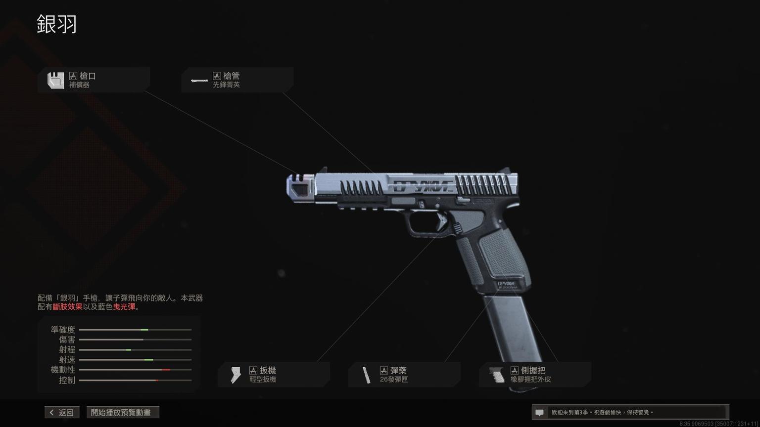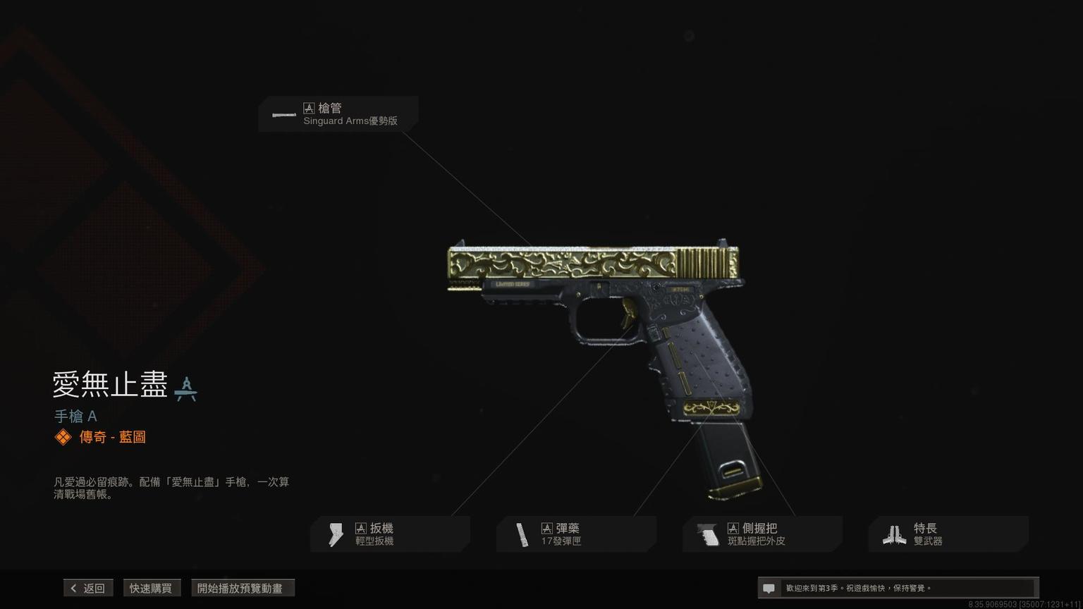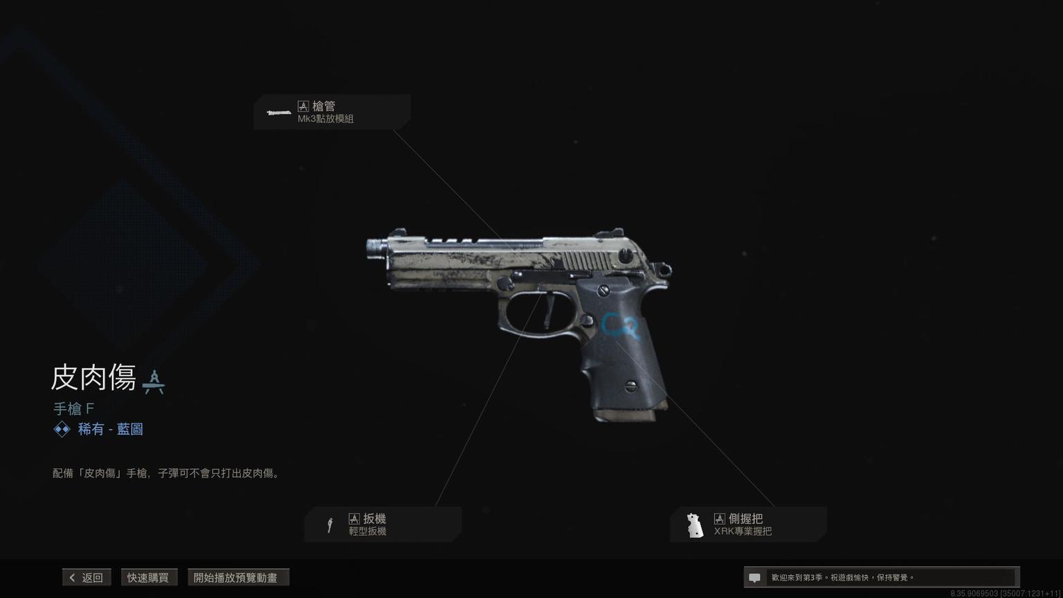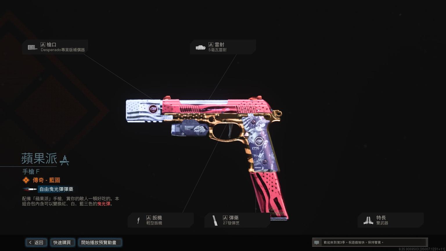 手枪Renetti传奇蓝图<苹果派>,含红、白、蓝三色自由曳光弹效果。