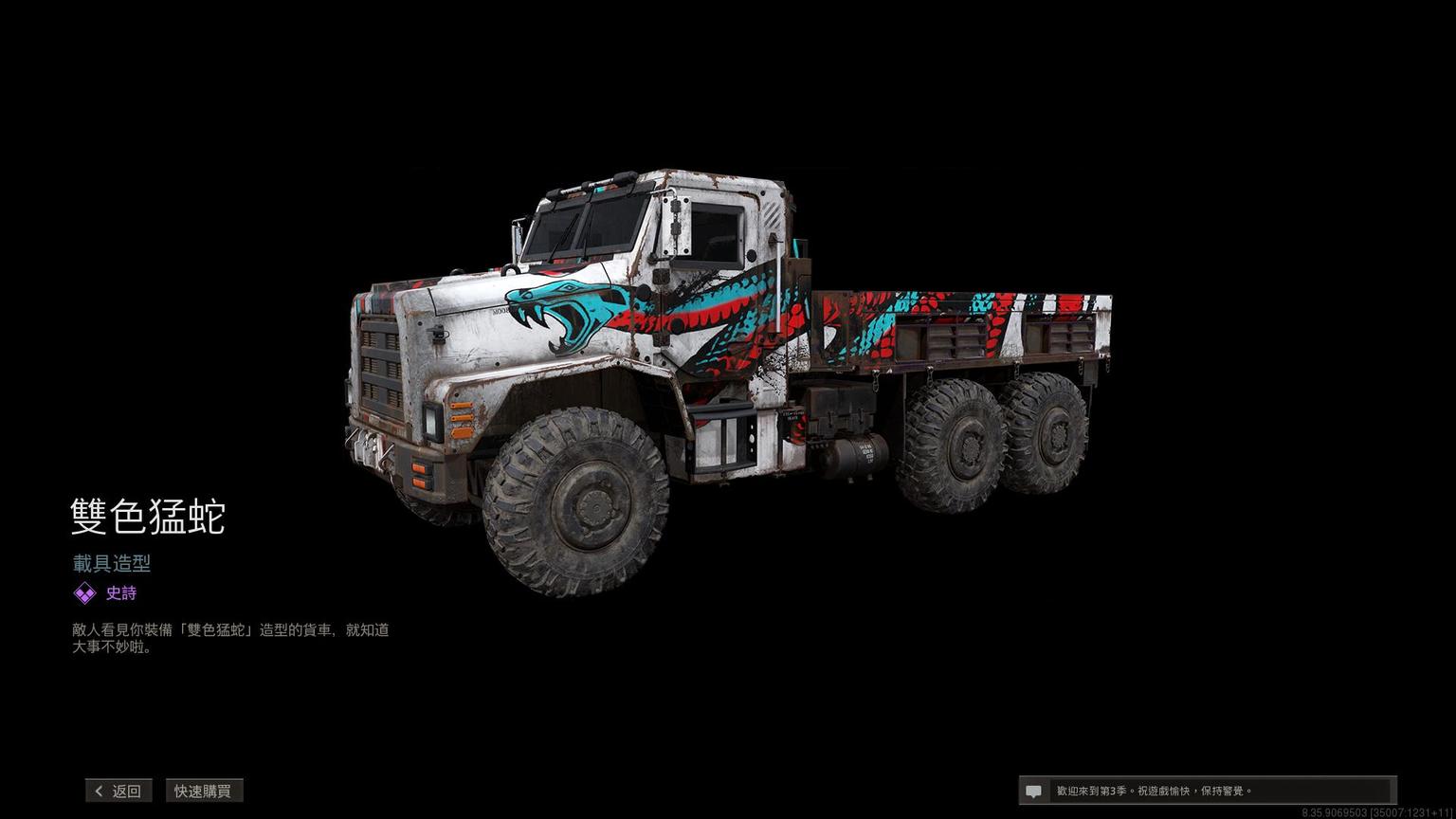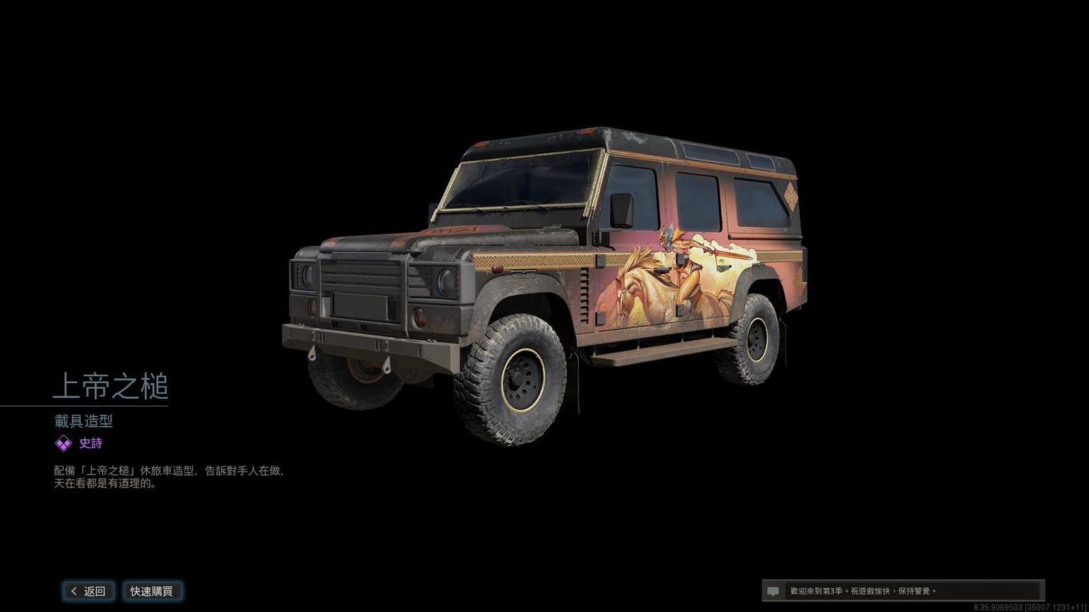 载具包。五辆载具一次集齐。第四赛季的车皮。