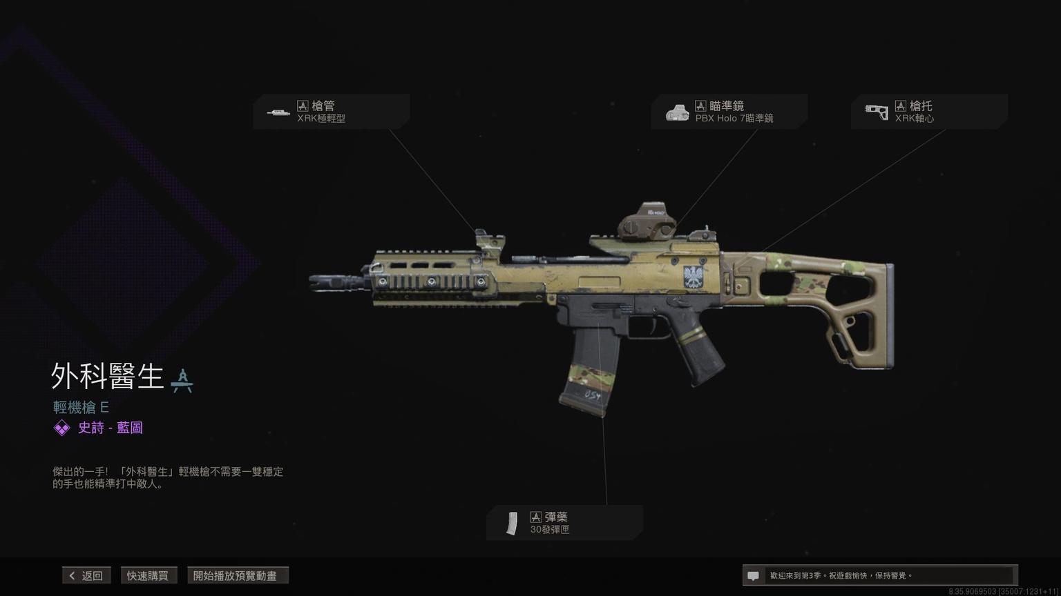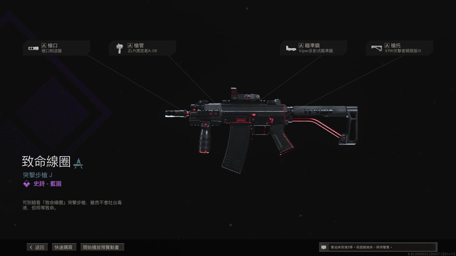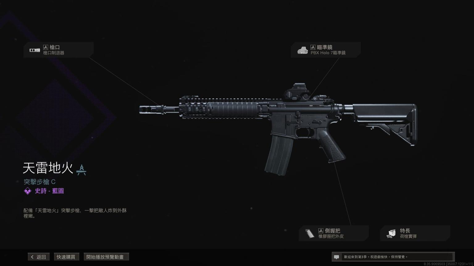 突击步枪Grau 5.56传奇蓝图<原型:阿尔法>,带紫色曳光弹特效。