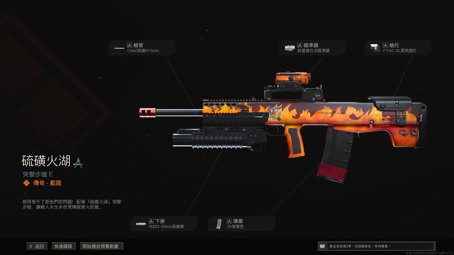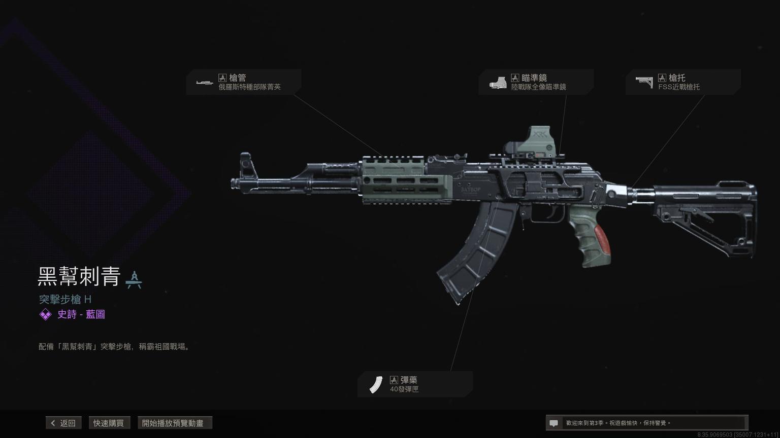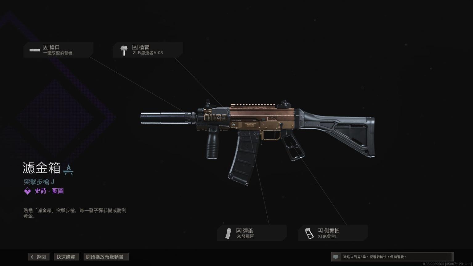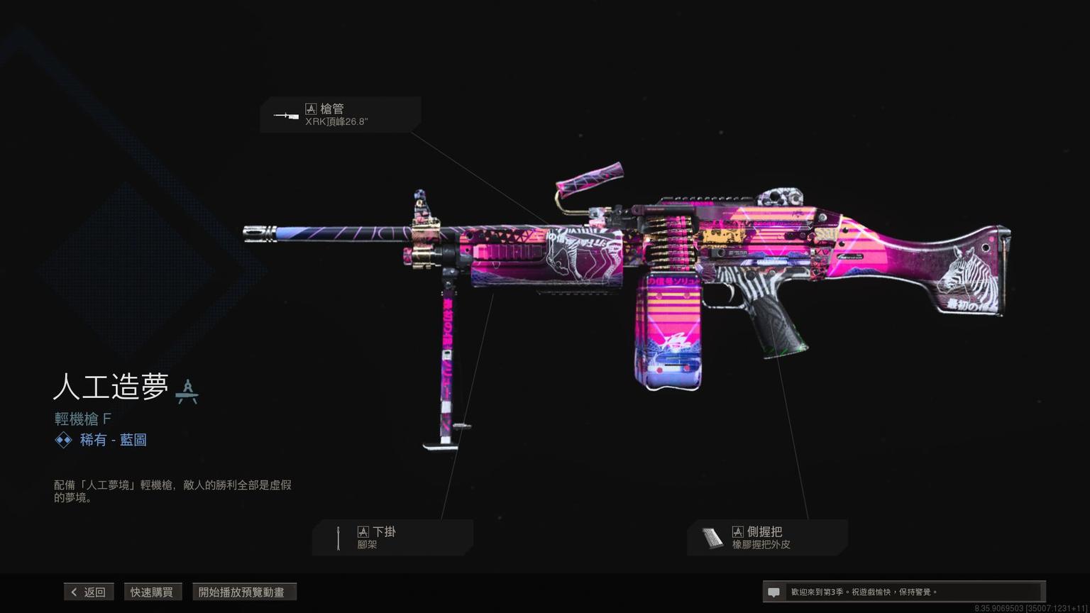 突击步枪Grau 5.56传奇蓝图<原型:阿尔法>,带紫色曳光弹特效。