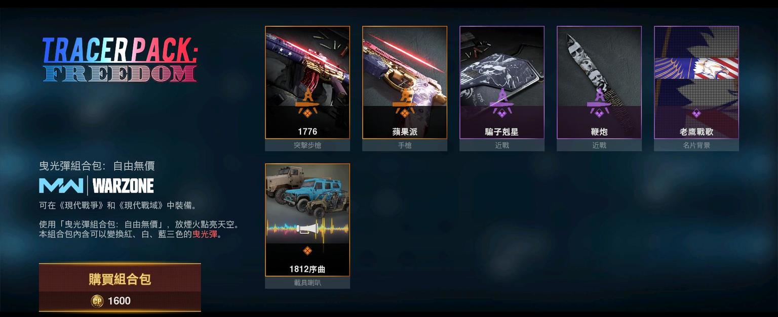 代码:374 曳光弹组合包:自由无价 1600cp