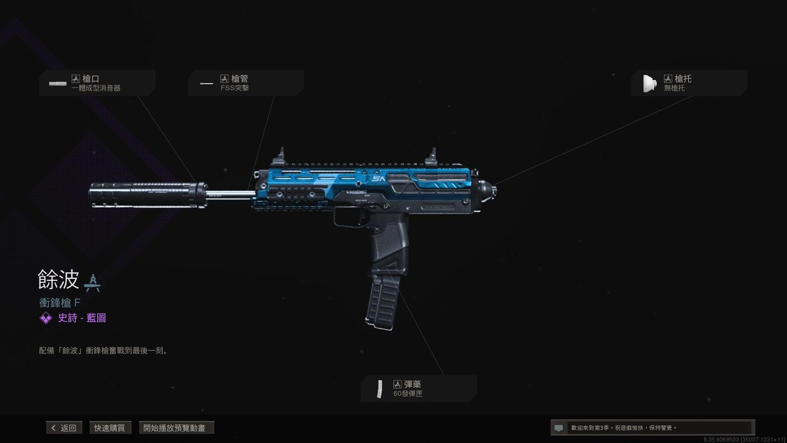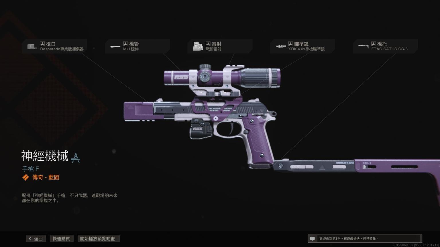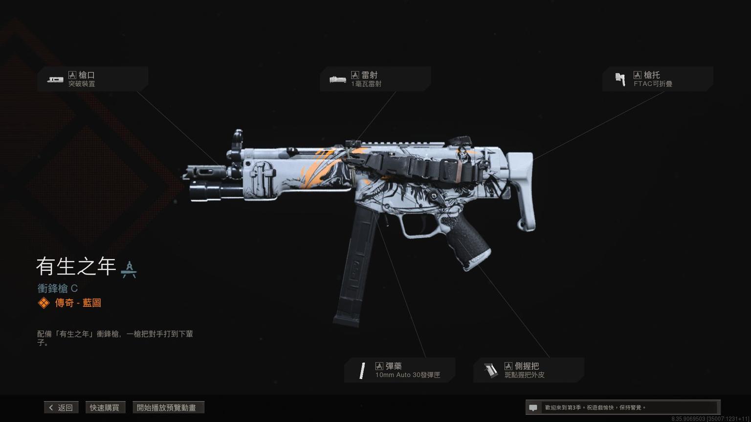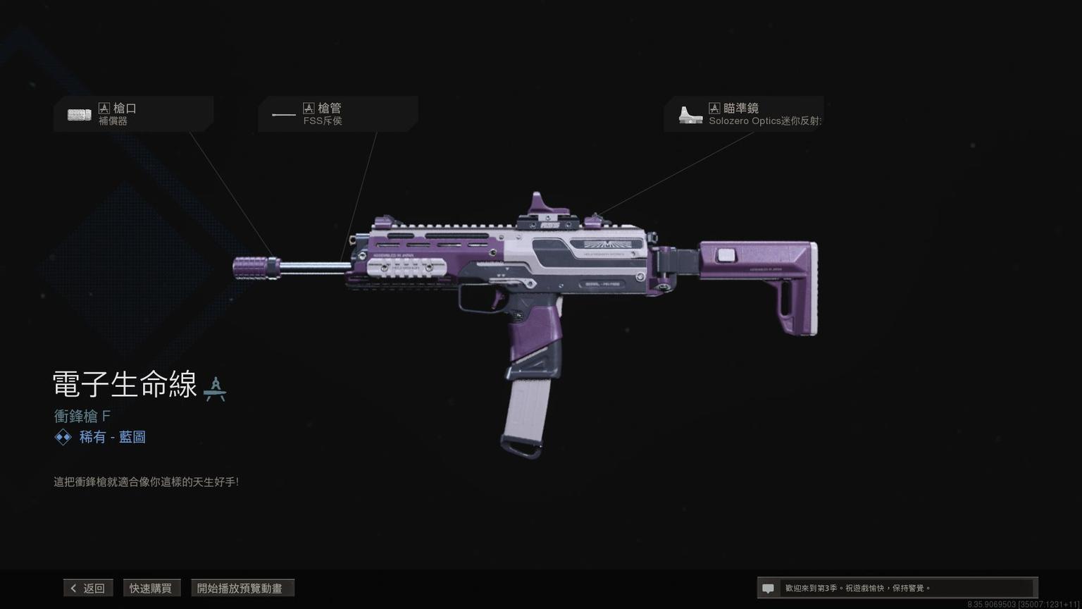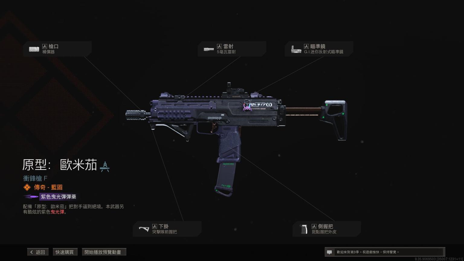 冲锋枪MP7传奇蓝图<原型:欧米茄>,带紫色曳光弹特效。