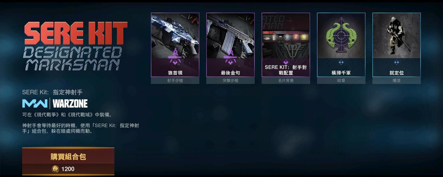 代码:375 SERE Kit:夺金玩家之王 1200cp
