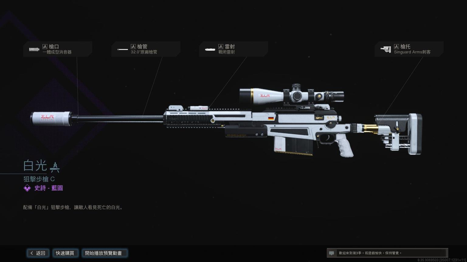 狙击步枪AX-50史诗蓝图<白光>。挺好看的。